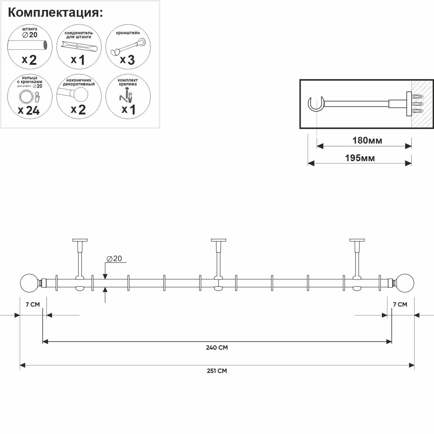 Карниз двухрядный для штор и тюля Уют 400см D 20 и 16 мм ОСТ черный Шар Ост Шар