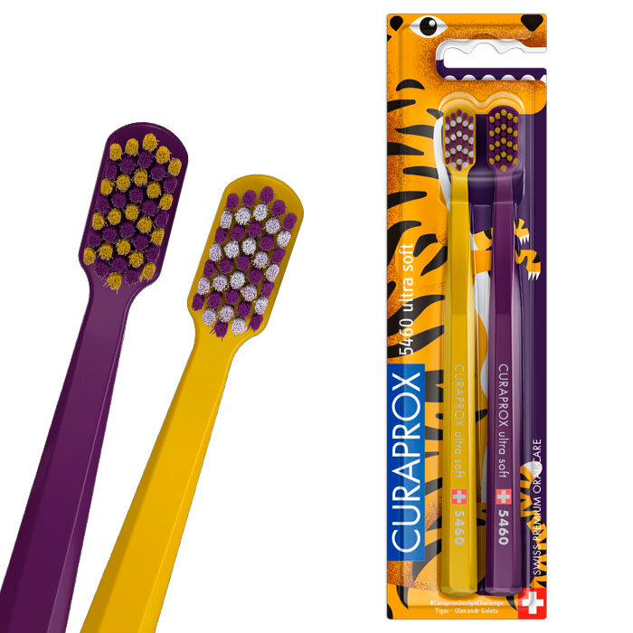 Лимитированный набор Duo Design Challenge Tiger из двух ультрамягких зубных щеток CS 5460 Ultra Soft. Запатентованная щетина Curen создает необыкновенно густую и эффективную чистящую поверхность. Щетинки Curen плотнее, чем нейлон, меньше впитывают влагу и на 60% больше сохраняют свои очищающие свойства. Бережно очищают поверхность эмали, более тщательно разрушают и удаляют зубной налет, особенно в зоне десневой борозды. Маленькая и компактная головка, имеющая легкий наклон, обеспечивает правильное положение щетки в пришеечной зоне. Восьмигранная ручка из легкого полипропилена помогает чистить зубы под правильным углом. Щетка содержит 5460 щетинок, d 0,10 мм.