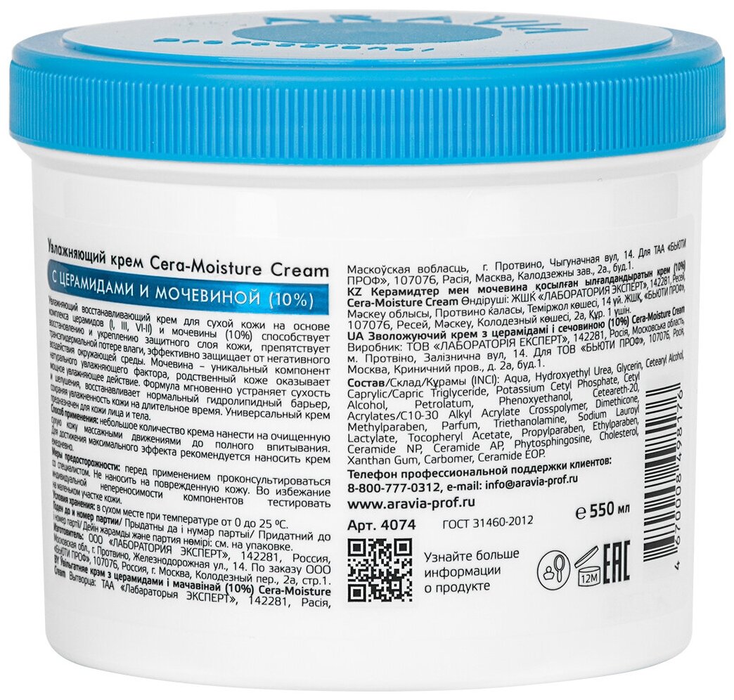 Aravia Professional Увлажняющий крем с церамидами и мочевиной (10%) Cera-Moisture Cream 550 мл (Aravia Professional ) (ЭХ99989424648)