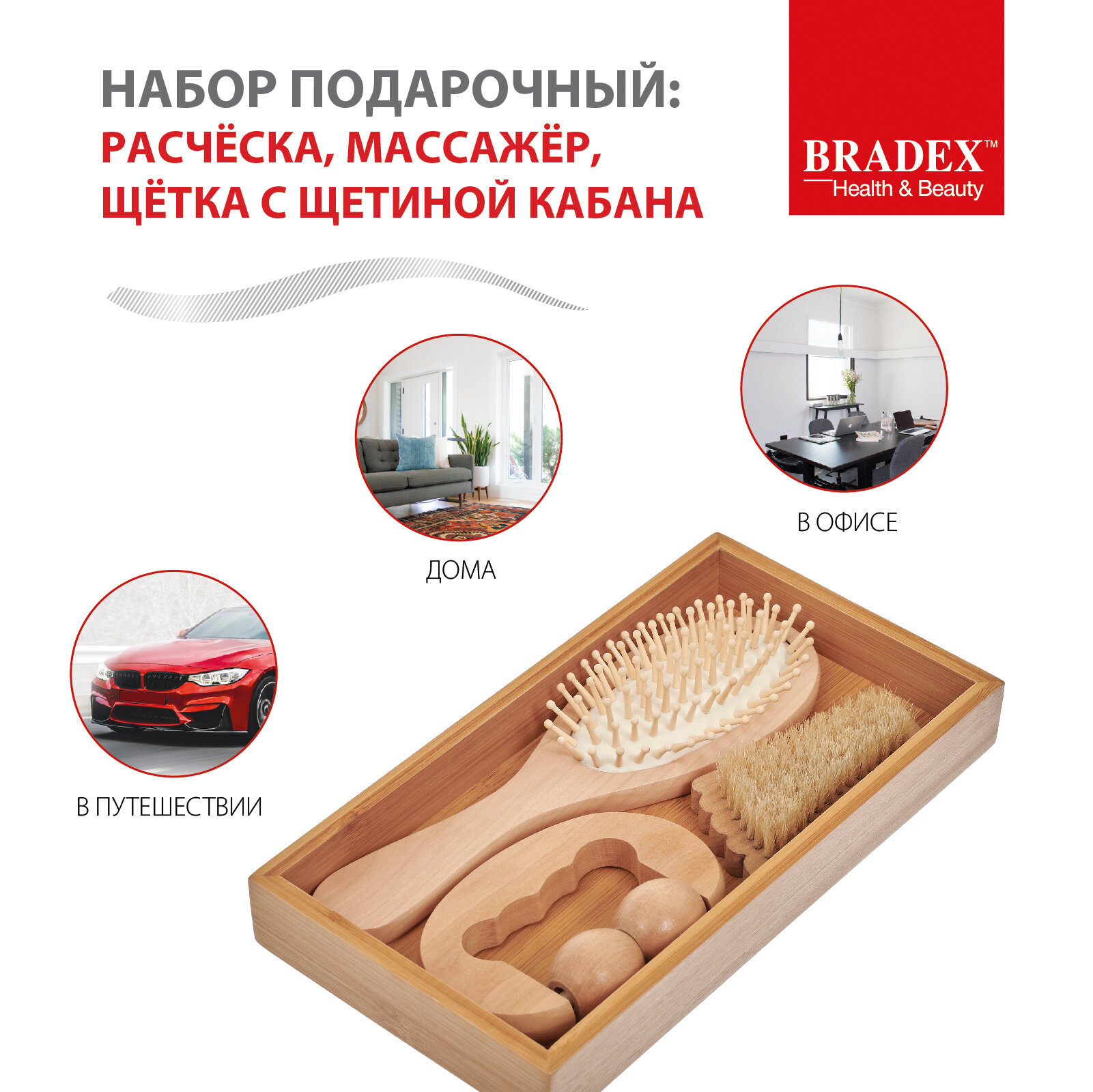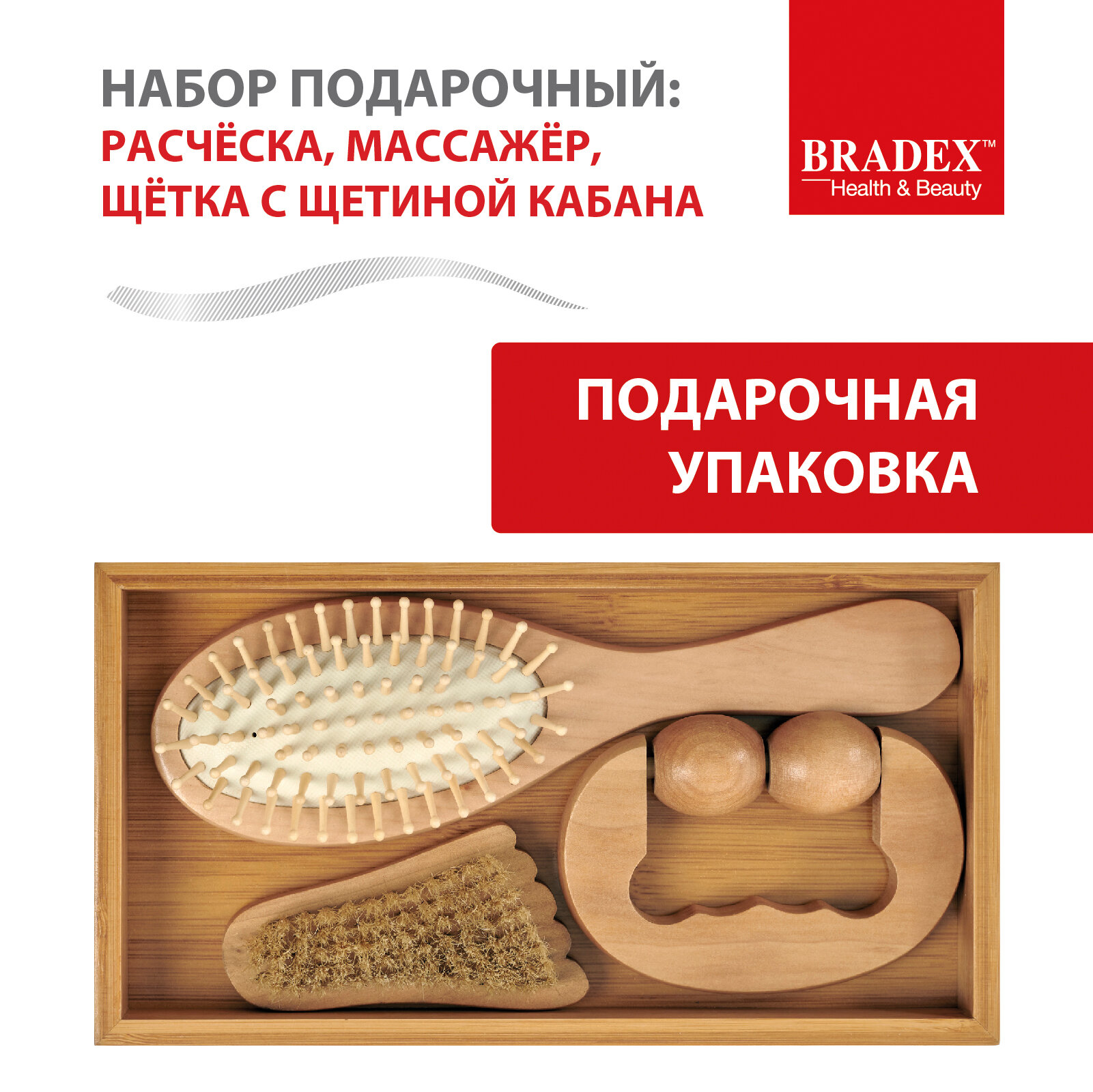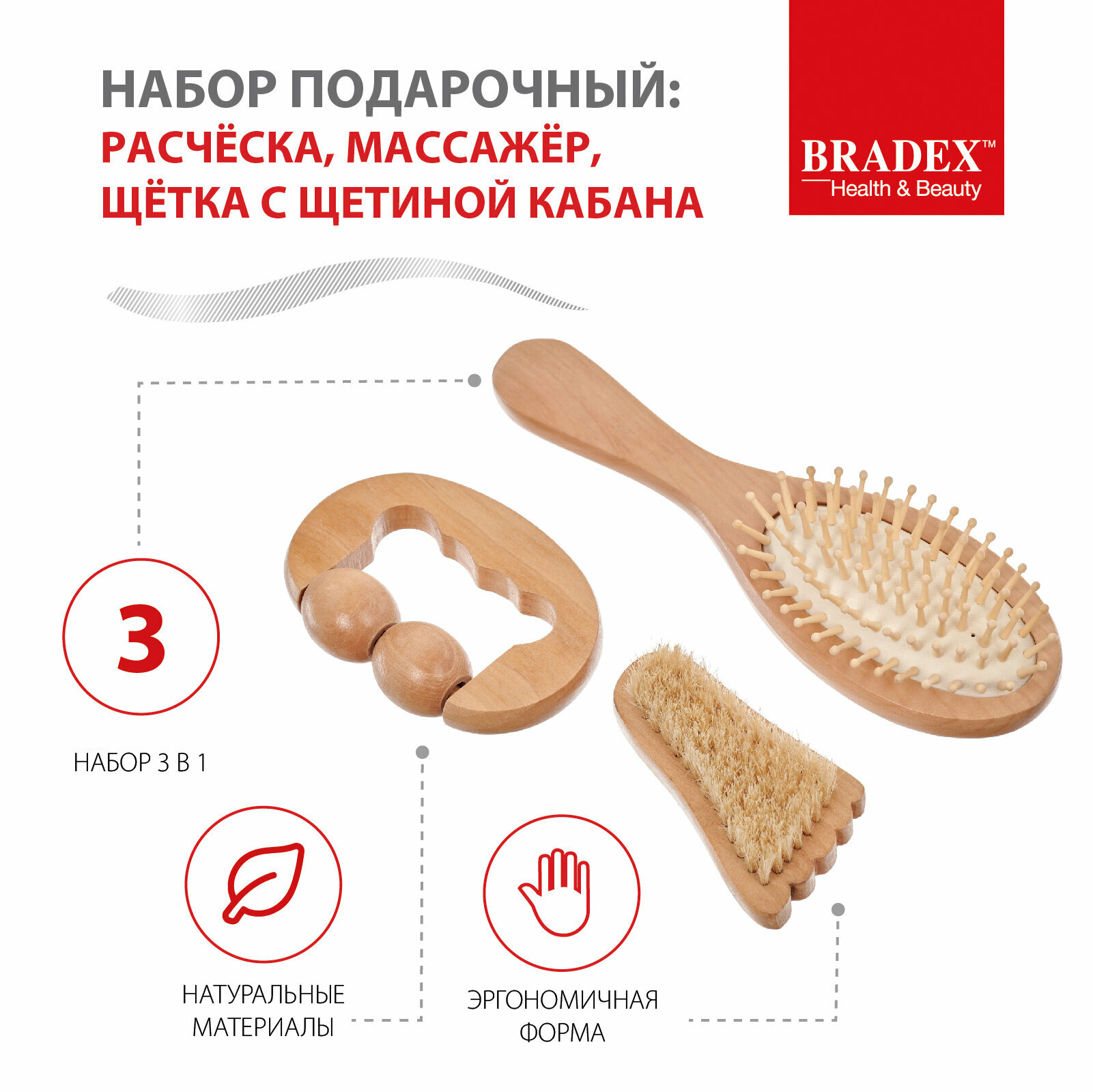 Набор подарочный расческа, массажер, щетка с щетиной кабана — многофункциональный бьюти-комплект из натурального дерева для проведения оздоровительного массажа в домашних условиях.