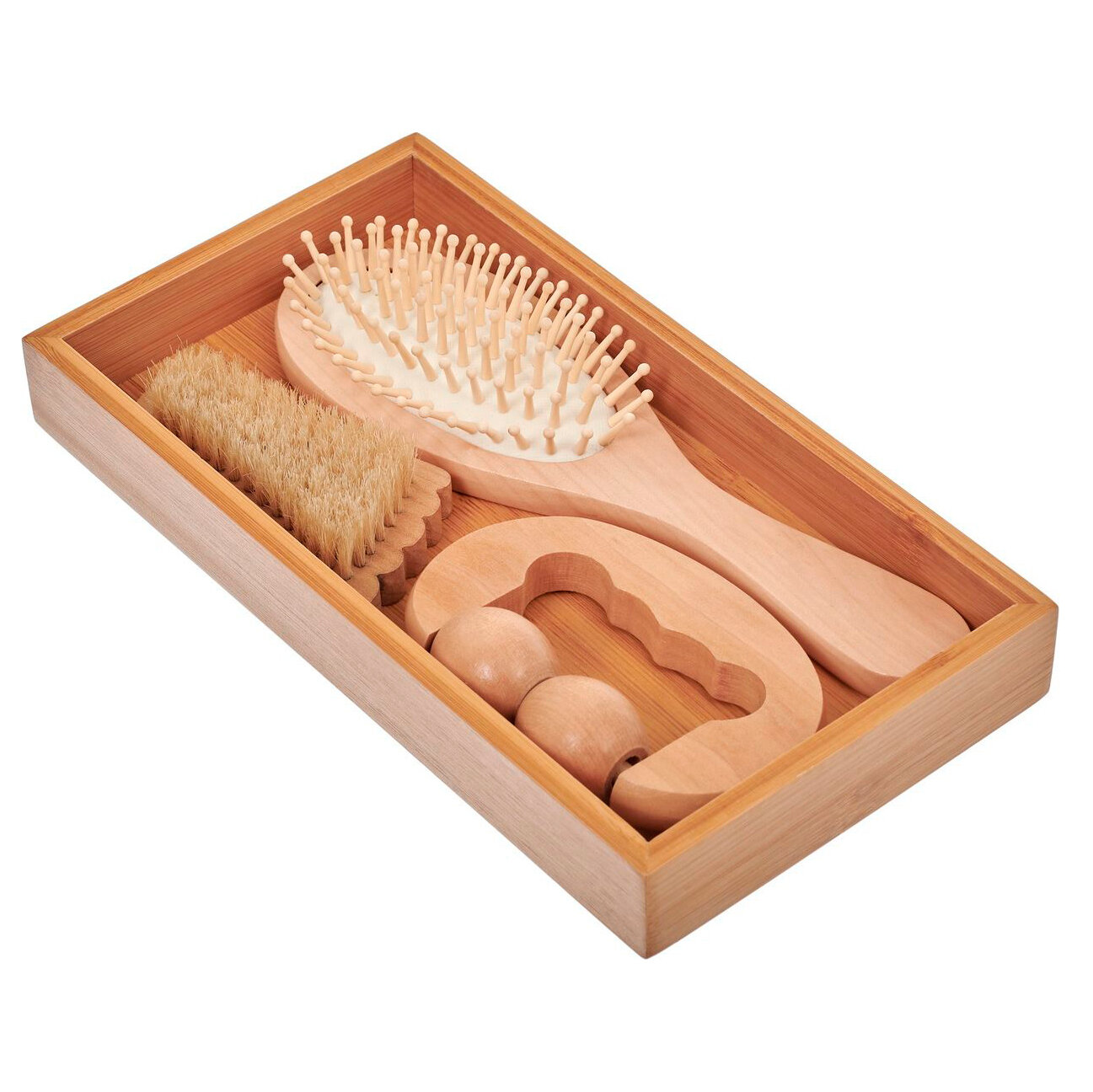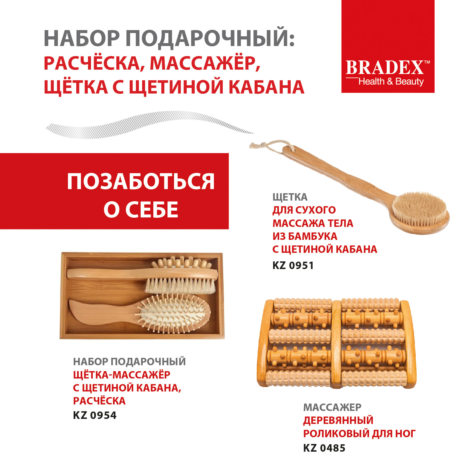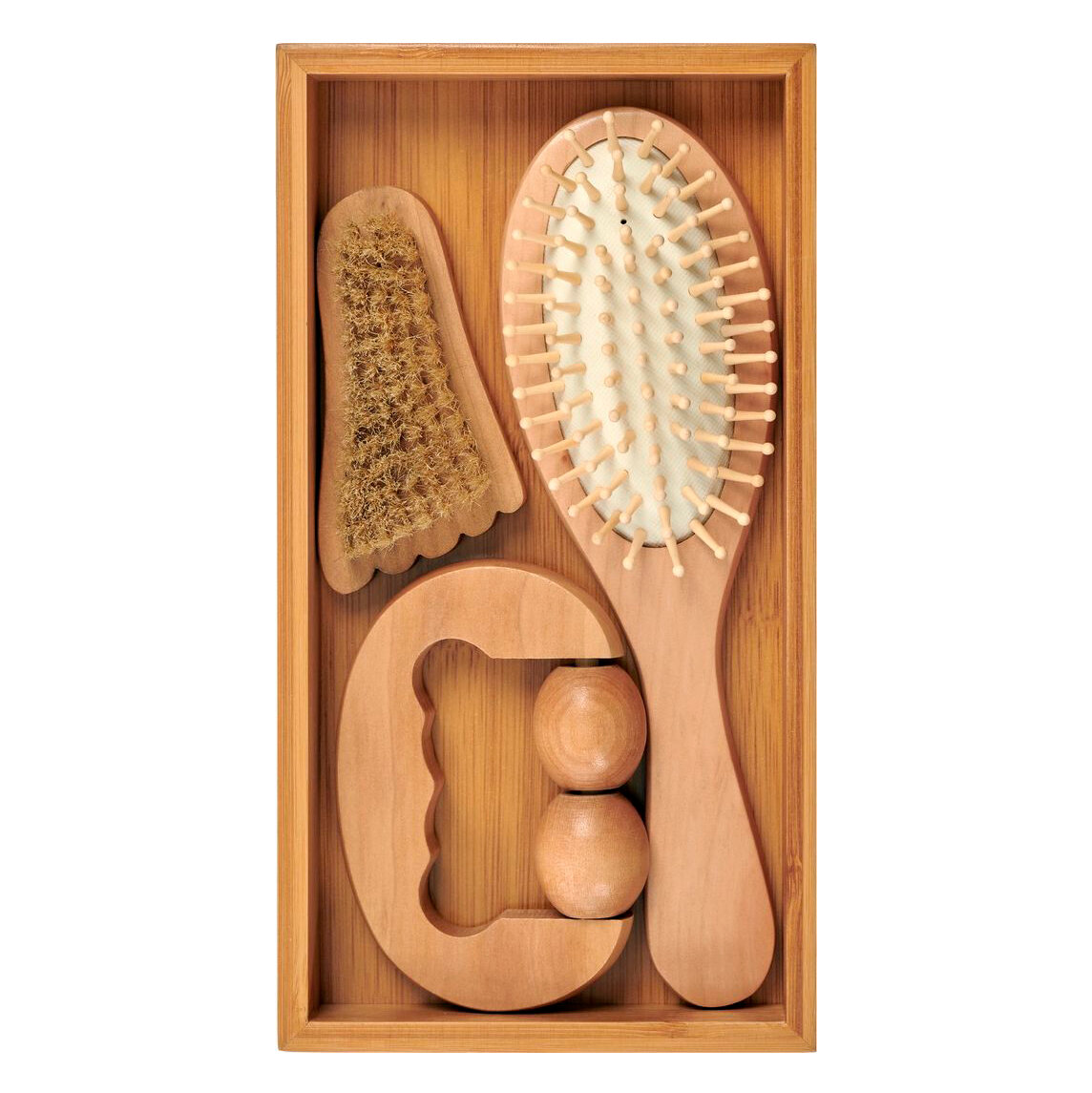 Набор подарочный расческа, массажер, щетка с щетиной кабана — многофункциональный бьюти-комплект из натурального дерева для проведения оздоровительного массажа в домашних условиях.