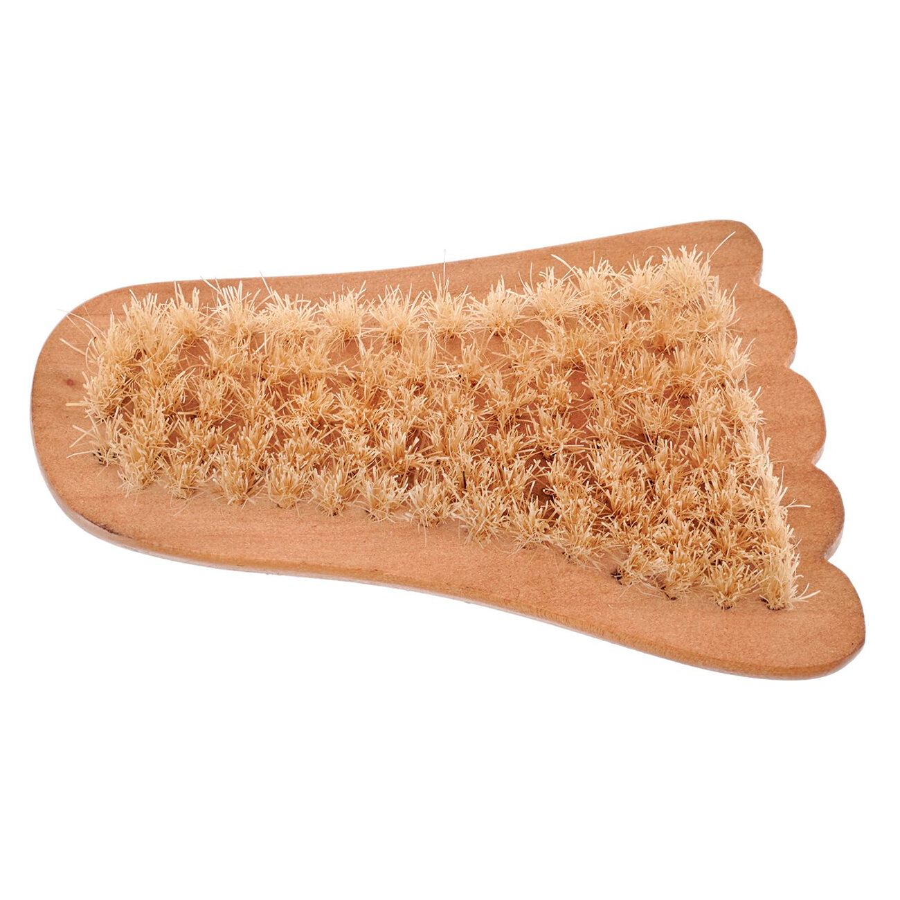 Щетка с набивной щетиной кабана средней жесткости смягчает сухую кожу ступней, делая ее мягкой и гладкой, применяется для обработки огрубевших участков кожи на локтях и коленях. Щетка отлично подойдет для полировки ногтей и очищения подногтевого пространства, а также позволит добиться деликатного отшелушивания ороговевших клеток кожи пальцев рук и ног.