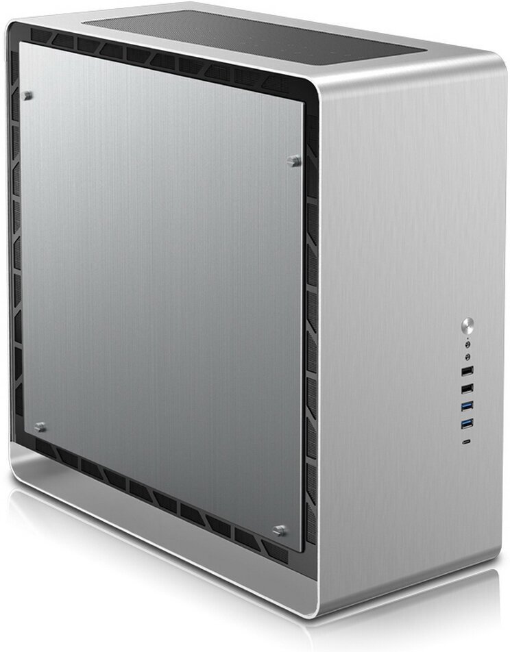 | JONSBO UMX6-A это корпус ATX, разработанный для использования с мощным железом. Он изготовлен из текстурированного алюминия. Внешних отсеков у JONSBO UMX6-A нет они бы нарушили эстетическую целостность дизайна. Да и разместить их было бы негде | на этом месте в корпус устанавливается блок питания ATX до 200 мм. Зато внутри можно разместить пару дисков формата 3,5 и до четырёх накопителей формата 2,5. Неплохо обстоят дела с охлаждением: на верхней панели можно установить три 120-мм или два 140-мм вентилятора, один 120-мм на задней панели и ещё два посадочных места имеются на дне корпуса, причём снизу предусмотрен специальный зазор для беспрепятственного забора воздуха. |