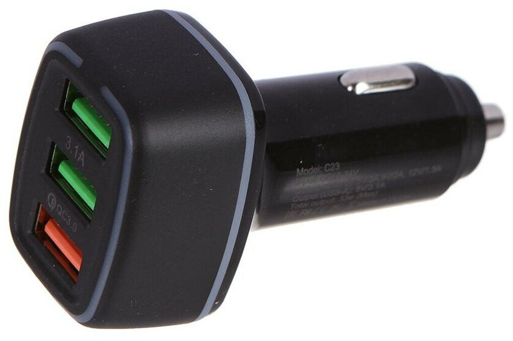 Зарядное устройство автомобильное Red Line УТ000027495 Tech USB (QС 3.0 18W) + 2 USB (31А) черное C23