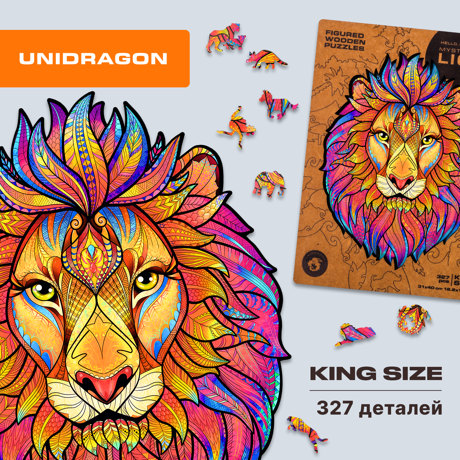 Unidragon Деревянный пазл "Таинственный лев" 327 деталей Mysterious Lion