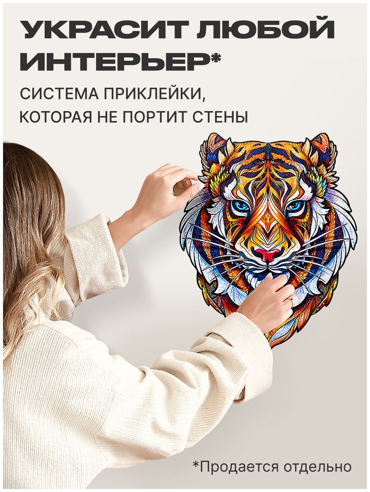 Есть животные, которые воплощают в себе мощь и ловкость, ярость и, одновременно, нежность. Милый Тигр — как раз такое животное. Но в нем скрывается и нечто большее. Он — олицетворение дикой Силы, не до конца понятной человеку, и неподвластной ему. Собирая этот пазл, загляните в глаза полосатого хищника, почувствуйте первозданную чистоту, в которую еще не пришел человек. Пусть пазл состоит из кусочков дерева, обработанных по придуманной человеком технологии, — атмосфера этой иллюстрации не даст вам забыть как мы малы и слабы перед лицом природы.Каждый пазл в серии «Животные» бывает трех или четырех размеров. Чем больше размер — тем сложнее собрать пазл и тем интереснее история внутри него. Самые маленькие из них подобны трейлерам к потрясающим фильмам, а пазлы размера Royal Size — это целые путешествия с собственными неожиданными поворотами сюжета.Все пазлы имеют уникальный рез, который создают талантливые дизайнеры, чтобы погрузить вас в историю и принести вам множество удивительных открытий.