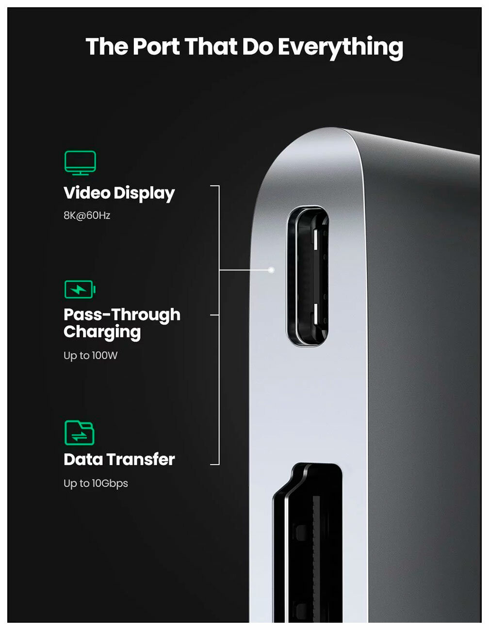 Ультратонкий USB C-хаб предназначен для MacBook Air 13 и 15 дюймов 2020/2019/2018, MacBook Pro 2020/2019/2018/2017/2016. UGREEN USB-C концентратор с гладкой алюминиевой отделкой идеально сочетается с MacBook. Все компактные и мощные порты концентратора могут работать одновременно.