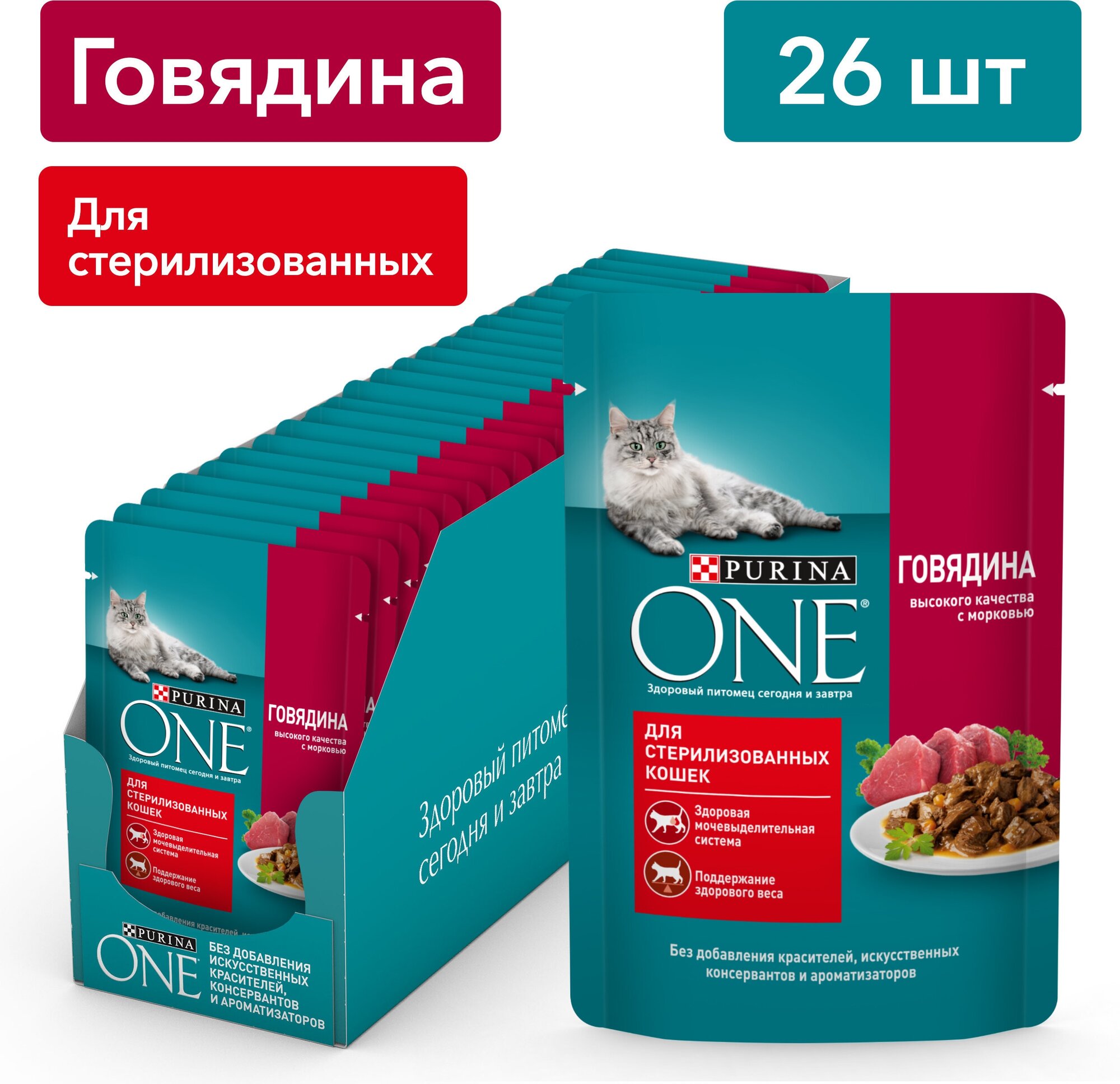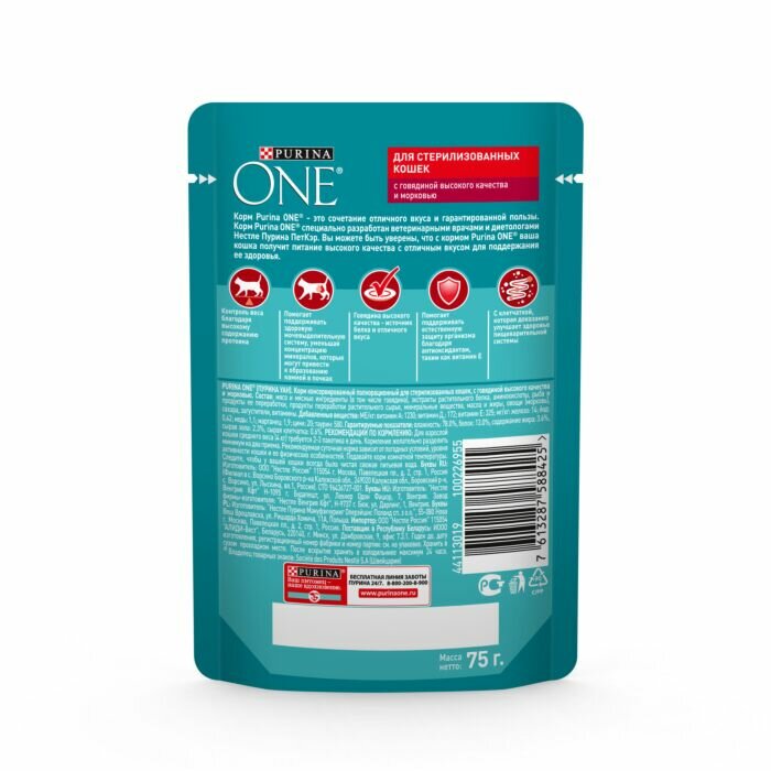 Влажный корм Purina ONE для стерилизованных кошек говядина с морковью 75гр (12484665)