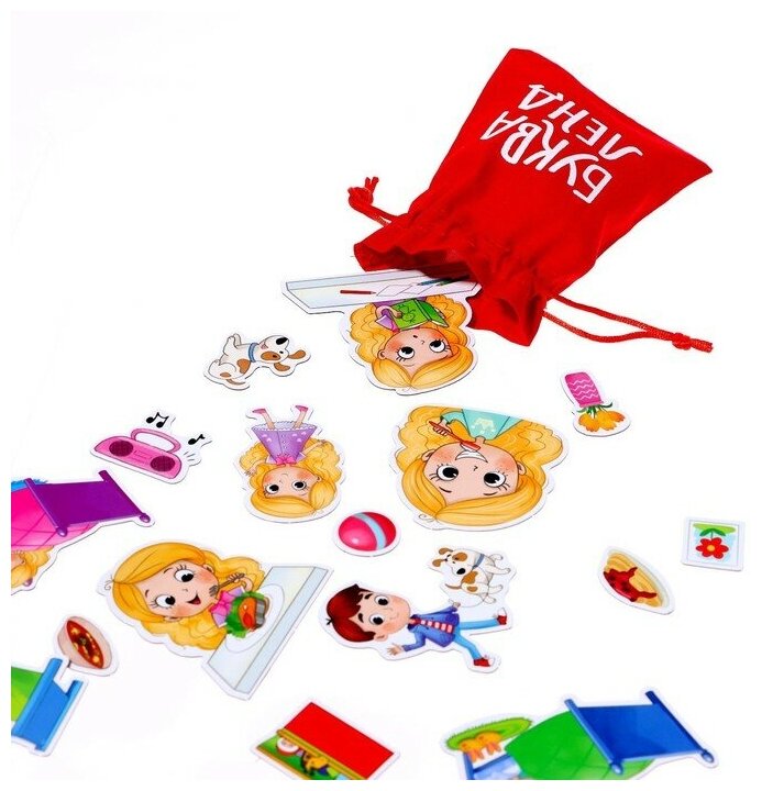 Яркая книга-игра с магнитными страничками и фигурками поможет малышу научиться планировать свой день. Составлять режим и соблюдать его с такой игрушкой будет весело и интересно!Внутри книги ребёнок найдёт более 50 магнитов и интересные задания, которые нужно выполнять с их помощью. Малыш будет крепить фигурки и привыкнет к режиму.В комплекте для хранения виниловых магнитов есть текстильный мешочек. Рекомендовано для детей от 3 лет.