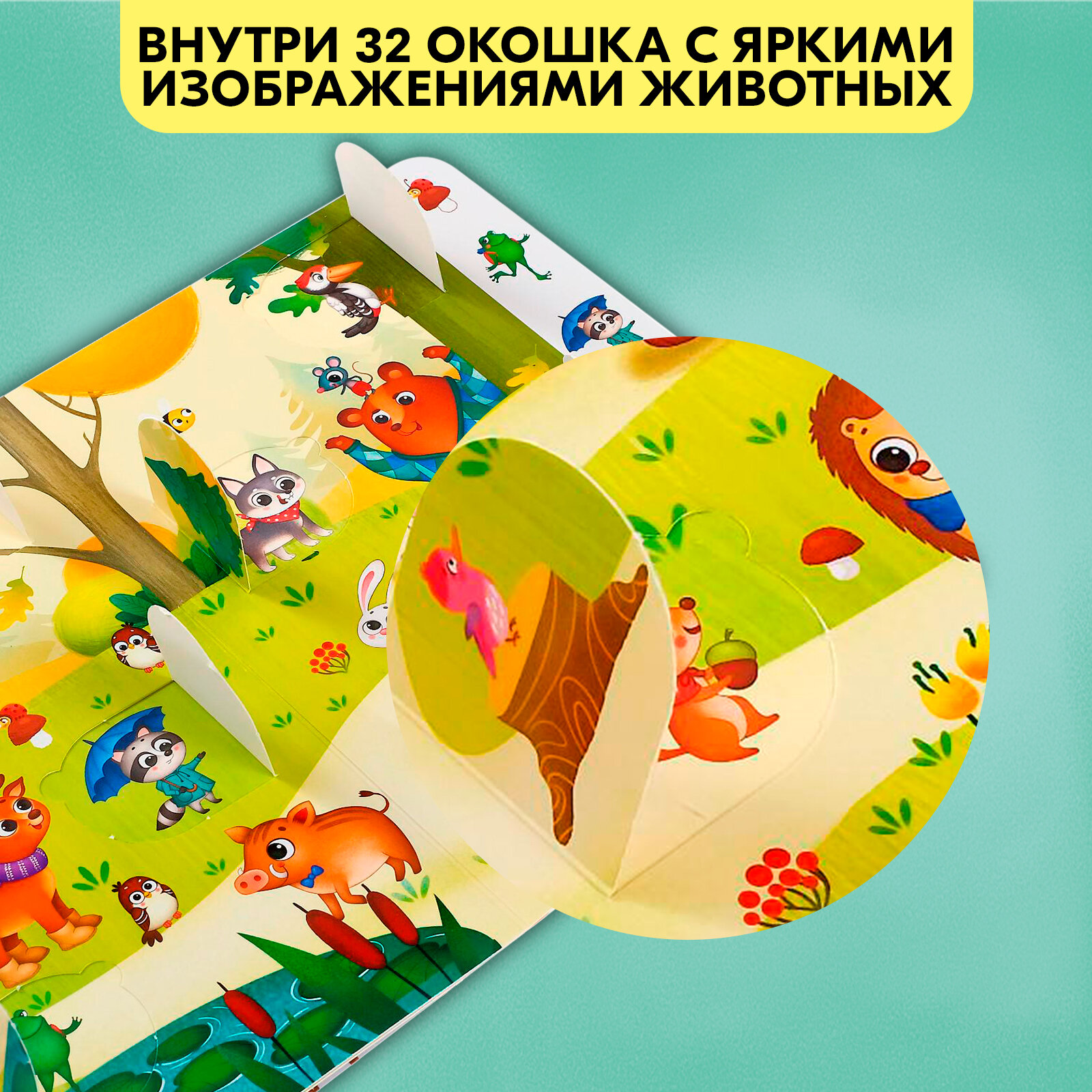 Книга сделана из плотного картона, поэтому прослужит долго. Внутри ребёнок найдёт 32 окошка с яркими изображениями животных. Также в книжке есть интересные задания, типа «Найди и покажи».