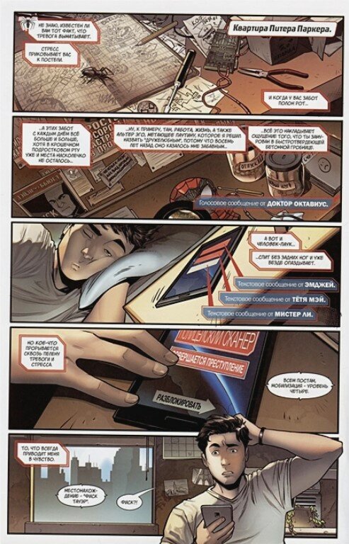 Новые приключения Человека-Паука дадут читателям свежий взгляд на жизнь супергероя! Дополняя историю, рассказанную компанией Insomniac Games, в сюжете "Война в городе" мы узнаем расширенную историю двух злодеев вселенной, с которыми была тесно связана жизнь Паркера – гениального учёного и ментора Питера доктора Октавиуса, пытающегося создать лекарство от нейродегенеративных расстройств, и мистера Негатива, который является директором в приюте, где работает тётя Питера. Вместе они встают на путь злодеев с целью отомстить Нью-Йорку и мэру Озборну, а Паркер во что бы то ни стало должен им помешать, ведь на кону не только судьба города, но и жизнь его дорогой тётушки!Далее "Скорость", события которой были написаны специально для комикса, мы познакомимся с таинственным призраком, устраивающим налёты по всему городу. Мы узнаем о его прошлом, связях с Озкорп и очередных скелетах, хранящихся в шкафу Нормана Озборна. У Питера есть личный мотив предотвратить угрозу – этот призрак напал на его любимую девушку Мэри Джейн!А события сюжета "Чёрная кошка наносит удар" расскажут о тесных взаимоотношениях Питера с Черной кошкой – красивой, ловкой, сногсшибательной, но вместе с тем опасной и хитроумной женщиной. Какие события связывали их раньше, и что Фелиция Харди хочет от Человека-паука сейчас? В какие кошки-мышки будет втянут Паркер и какой шанс выиграть эту опасную игру и при этом не умереть?