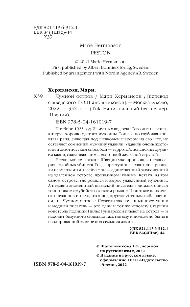 Книга: Чумной остров (Мари Хермансон); Эксмо, Inspiria, Редакция 1, 2022