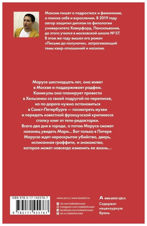 Максим Сонин — российский писатель и сценарист. Пишит о подростках и феминизме о поиске себя и взрослении.
