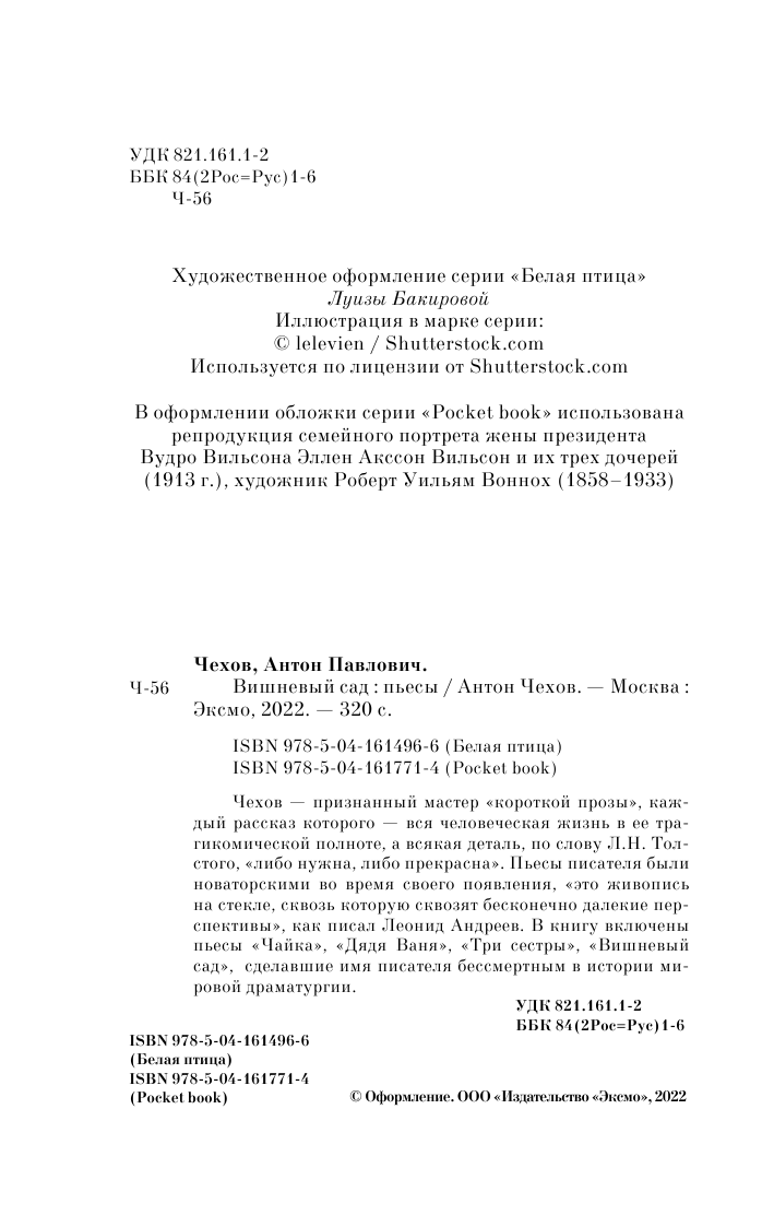 Оформляла предзаказ на данную книгу, так как очень понравилась обложка + книга нужна была мне для изучения дополнительной литературы. Помимо Вишнёвого сада , там есть ещё пьесы Чехова. Очень понравилось произведение Три сестры .