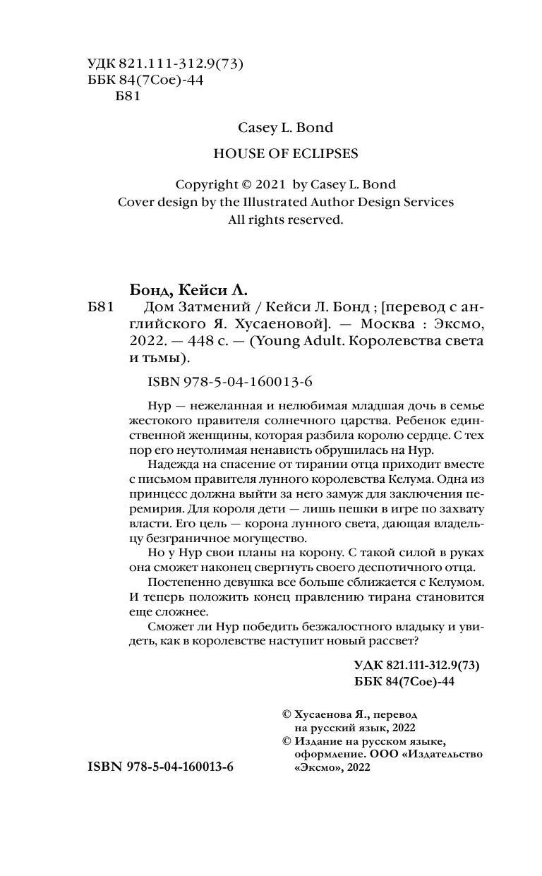 Книга: Дом Затмений (Кейси Л. Бонд); ООО "Издательство "Эксмо", 2022