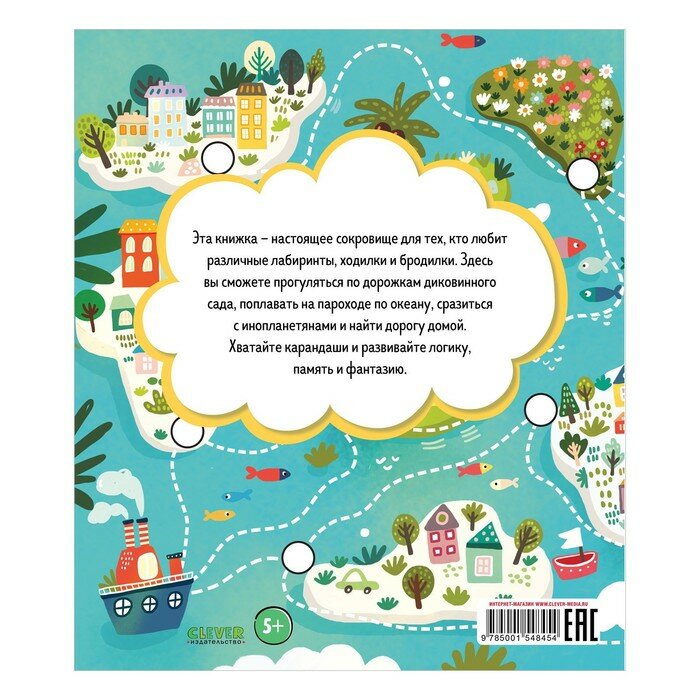 Большая книга ходилок, бродилок и лабиринтов. Для детей 5+. Издательство Клевер