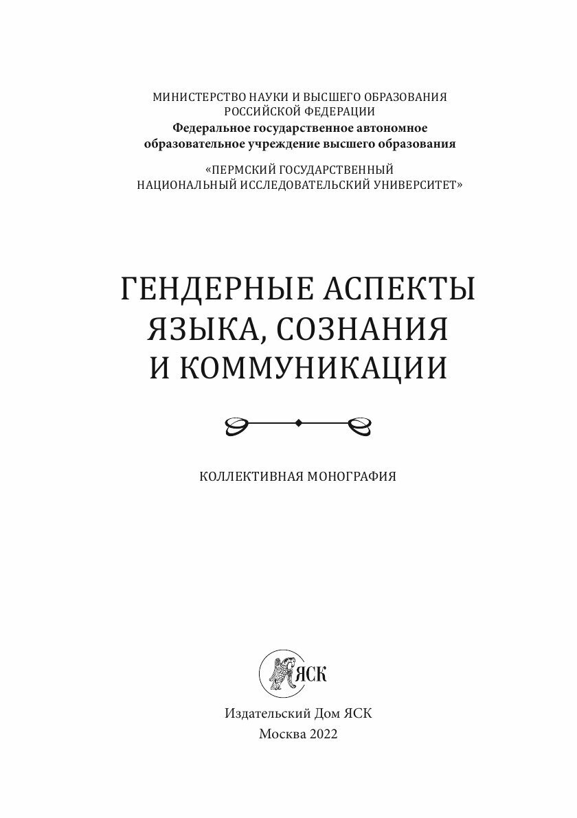 Гендерные аспекты языка сознания и коммуникации (Анков Андрей Александрович, Гаранович Марина Владимировна, Гриценко Елена Сергеевна); ИД ЯСК, 2022