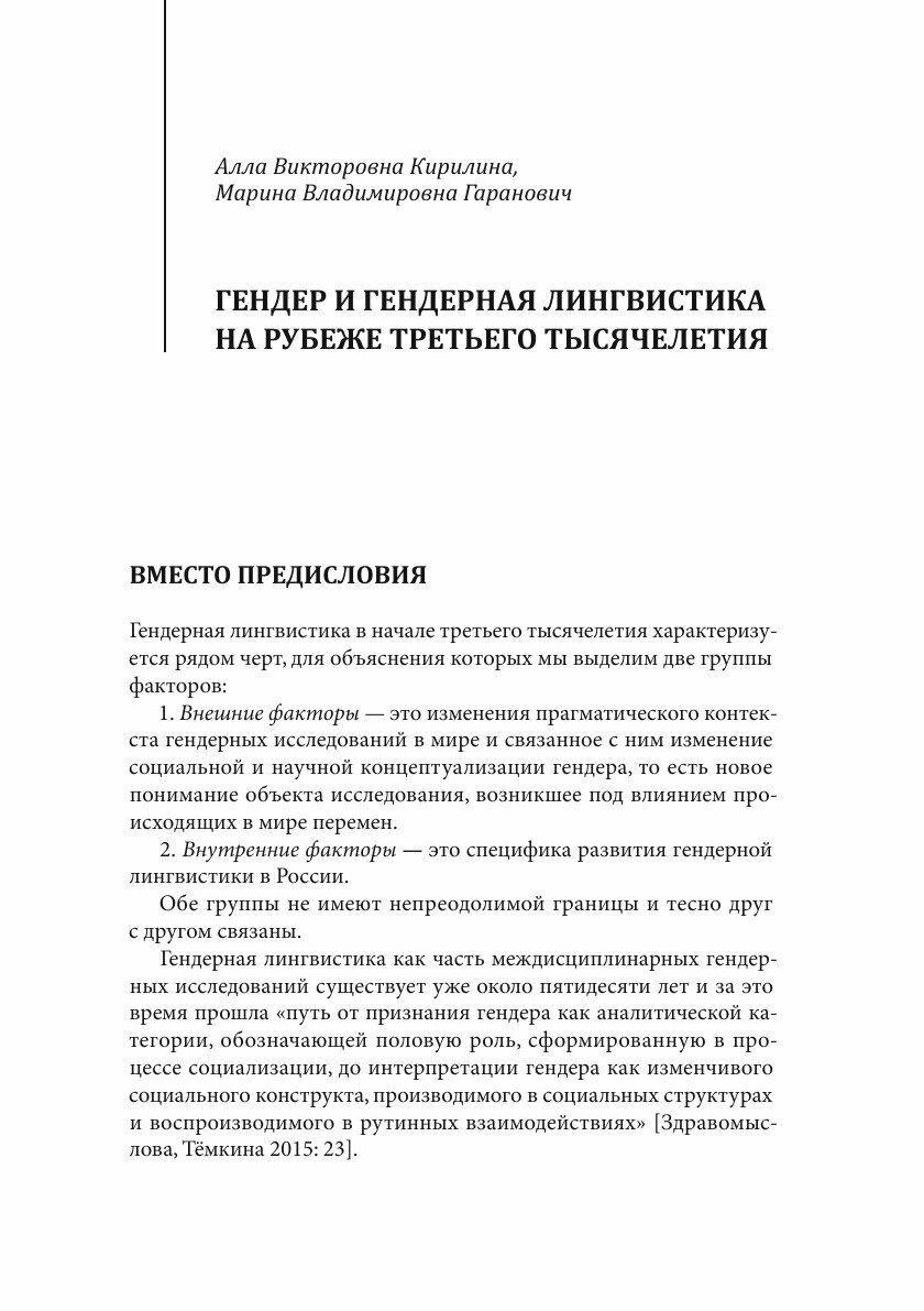 В работе находят свое развитие основные положения Московской, Нижегородской, Воронежской, Екатеринбургской и Пермской научных школ, в рамках которых разрабатывается гендерная проблематика. Исследованы гендерные аспекты языка, национальных языковых картин мира, языкового сознания и коммуникации, когнитивных процессов; представлены результаты психо- и социолингвистических исследований. Коллективный труд характеризует состояние отечественной гендерной лингвистики и очерчивает перспективы ее развития с учетом прагматического контекста современных представлений о гендере и модели человека в мире.