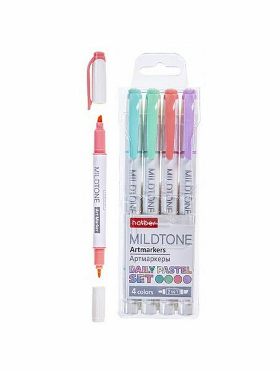 Артмаркеры двухсторонние Mildtone PASTEL 4 штуки Хатбер