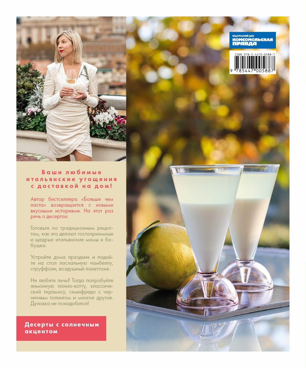 Десерты с солнечным акцентом. Ваши любимые итальянские лакомства с доставкой на дом! Автор бестселлера «Больше чем паста» возвращается с новыми вкусными историями. На этот раз речь о десертах. Готовьте по традиционным рецептам, как это делают гостеприимные и щедрые итальянские мамы и бабушки. Устройте дома праздник и подайте на стол пасхальную чамбеллу, струффоли, воздушный панеттоне. Восхительные рецепты из доступных ингредиентов. Не любите печь? Тогда попробуйте лимонную панна-котту, классический тирамису, семифредо с черничным топингом и многое другое. Духовка не понадобится!
