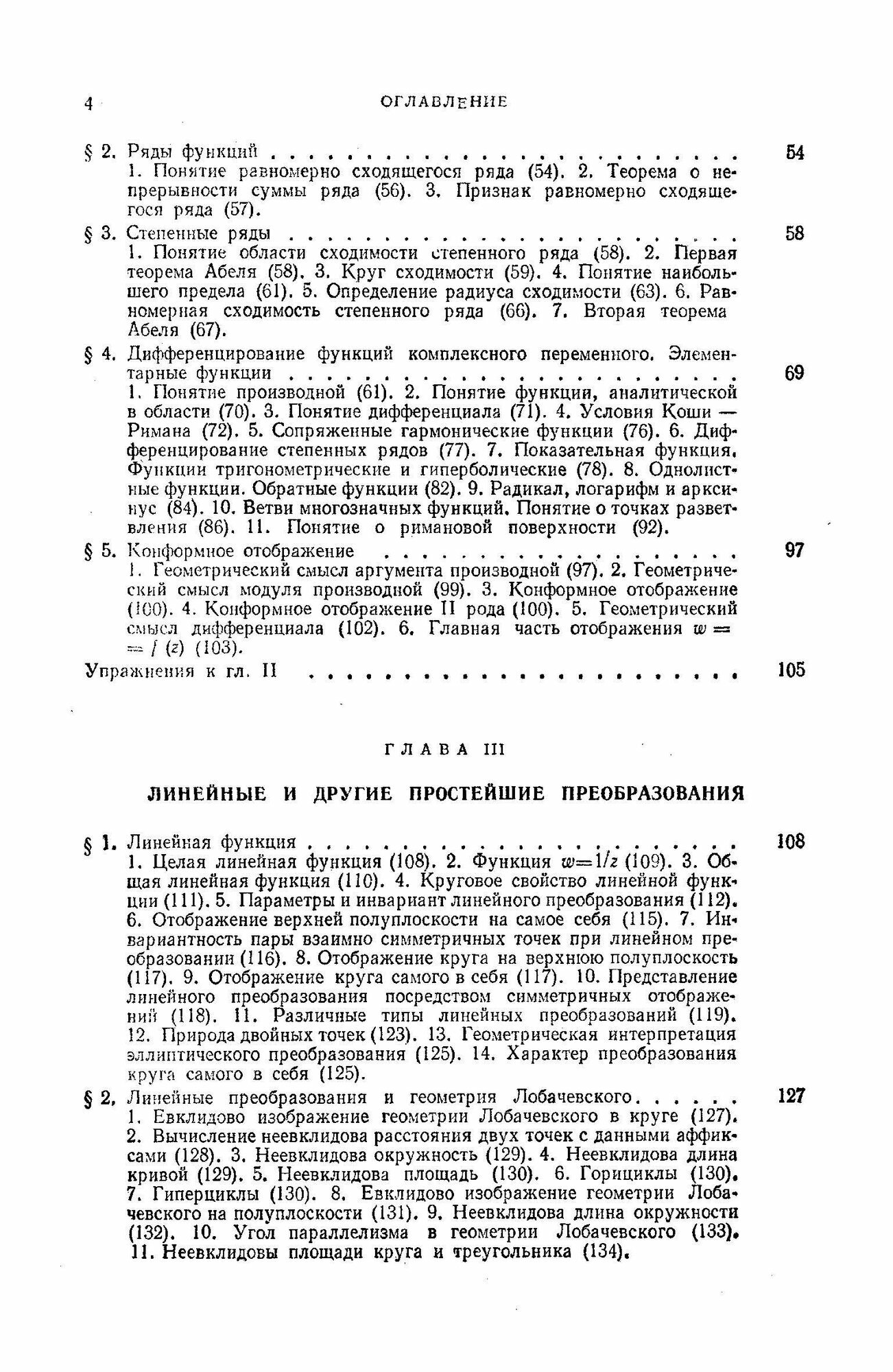Учебник отличается строгостью выводов и простотой изложения материала. Рассмотрены, в частности, следующие темы: конформные отображения, линейные преобразования, интеграл Коши, теоремы Коши и Пикара, ряды аналитических функций, ряды Лорана, особые точки, вычеты, бесконечные произведения, аналитическое продолжение, эллиптические функции.