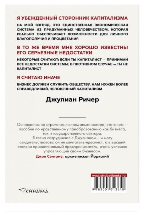 Основываясь на своем сорокалетнем опыте управления бизнесом, Джулиан Ричер утверждает, что этично управляемые предприятия более эффективны, чем те, которые заботятся только о прибыли. В своей книге он рассказывает о простых инструментах, помогающих лучшим руководителям сделать свой бизнес более справедливым, а также поднимает вопросы, на которые современный капитализм должен найти ответ, если хочет выжить и процветать далее.