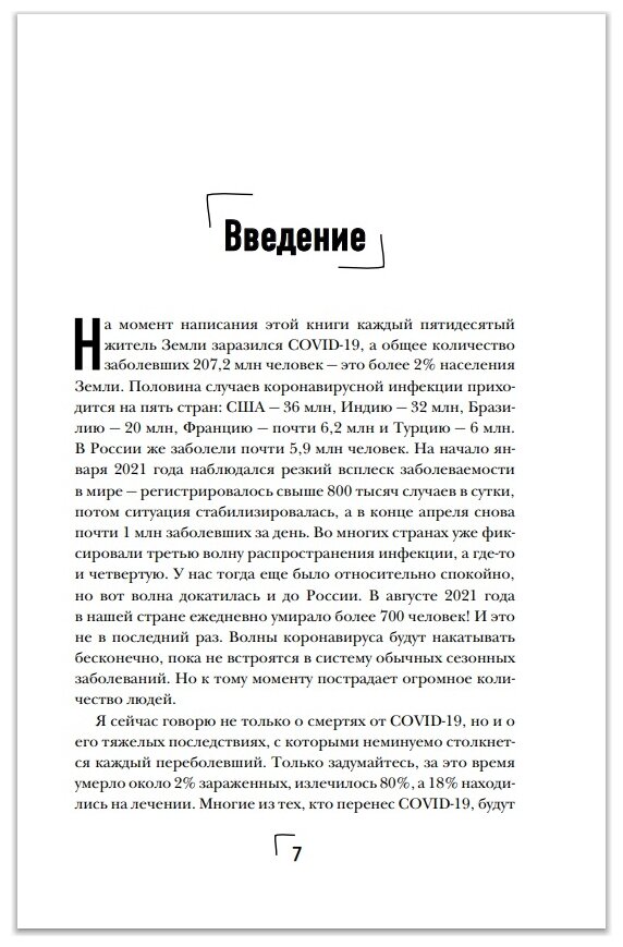 Купила книгу из-за авторитетности автора. + бонус - внутри классные картинки! После перенесенного ковида, тема для меня очень актуальная. В книге много практических рекомендаций. например " для профилактики и лечения любых респираторно-вирусных инфекций принимайте цинк", или "нехватка селена делает наш организм беззащитным перед вирусами", так же в книге есть интересная статистика "на 60% в России выросло число обращений родителей в связи с суицидальным поведением подростков" или