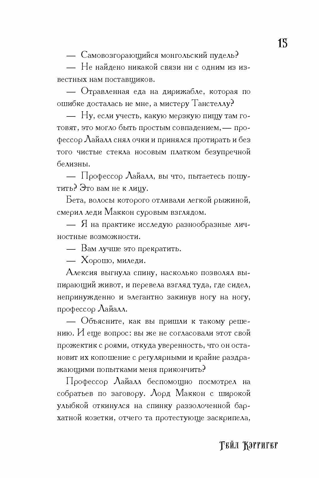 ) Мир продолжает расширяться, и мне интересно посмотреть, куда это приведет наших любимых персонажей. Сначала я немного беспокоилась о том, что книга будет посвящена беременности героини, но, к счастью для всех нас, Алексия - всё такая же импульсивная и упрямая, как всегда, просто продолжает игнорировать эту незначительную деталь. Беременная Алексия, ковыляющая со своим зонтиком по Лондону, как Шерлок Холмс, - просто прелесть!