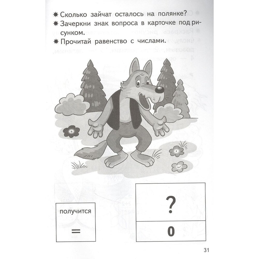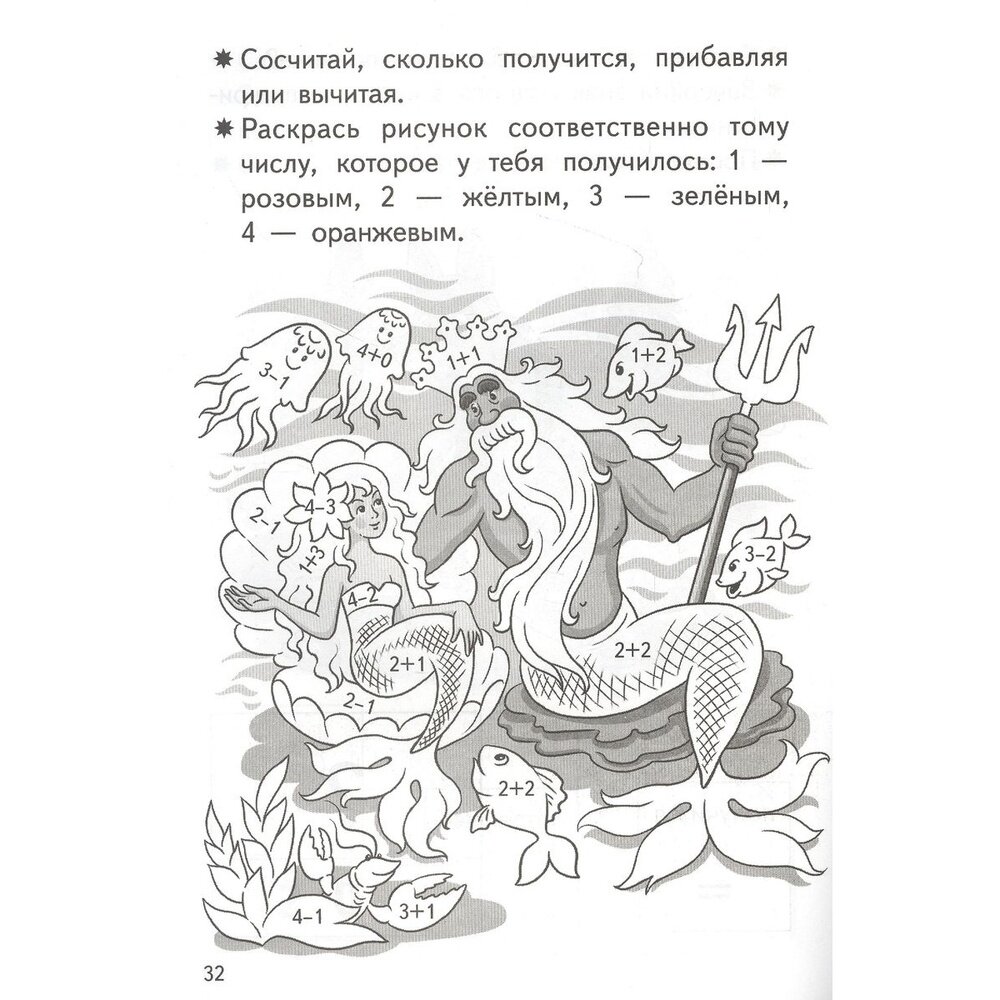 Достаточно хорошее пособие. Подробно на картинках показан каждый пример(единственное, там сразу следует ответ и детки постарше могут схитрить и просто прочесть, а не посчитать). Есть упражнения на закрепление. Мы использовали как дополнительный тренажер для закрепления навыков счета, но не как основное. Пособие черно-белое, так что помимо счета ребенок может еще и раскрасить мультяшных героев.