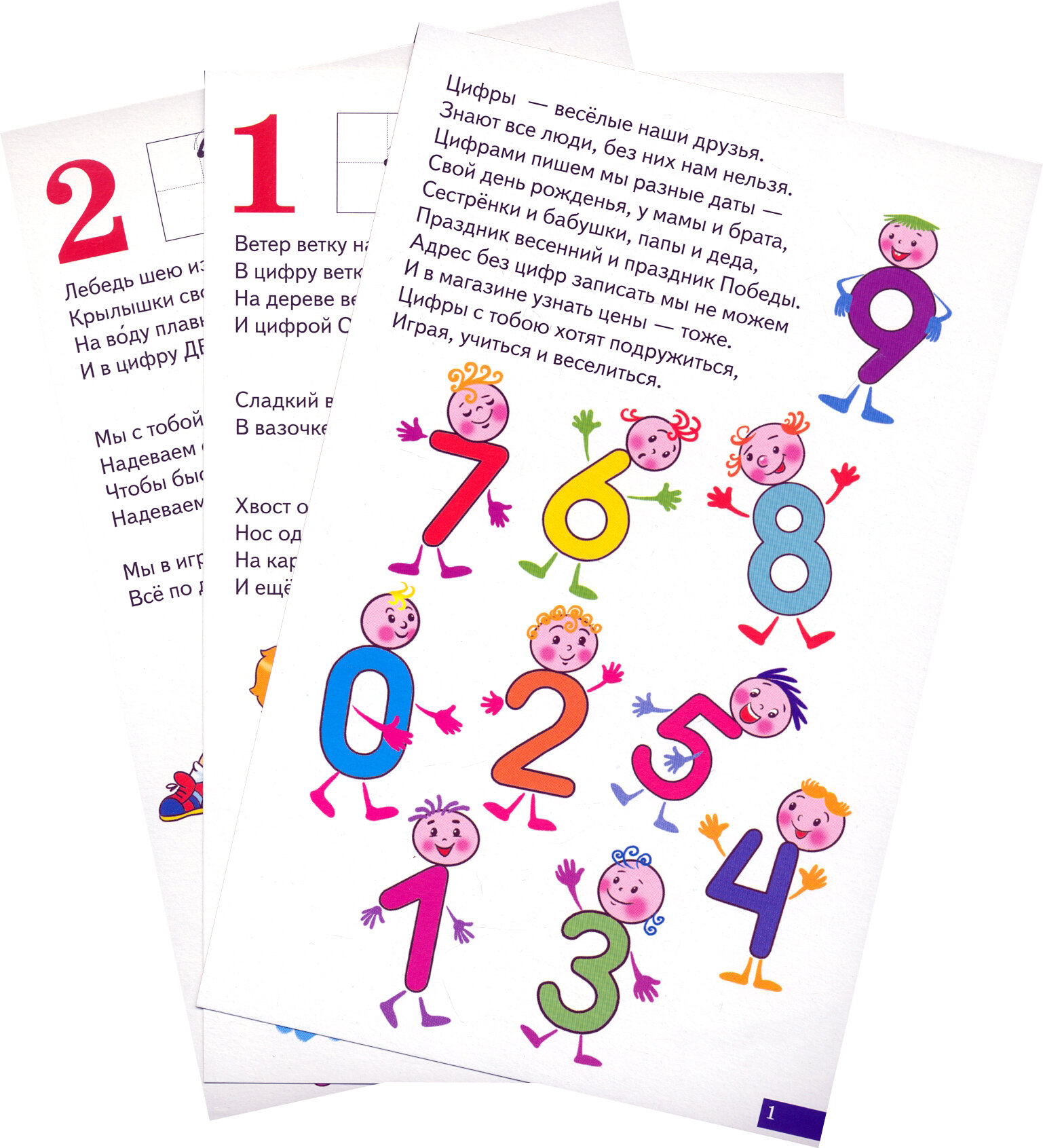 Веселые стихи и картинки познакомят детей с цифрами от 0 до 9 и числом 10. Ребенок не только запомнит их, но и научится соотносить число и соответствующее ему количество предметов, а также находить очертания цифр в окружающих его вещах.