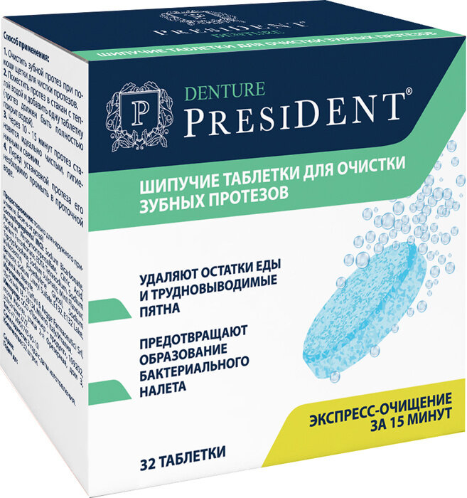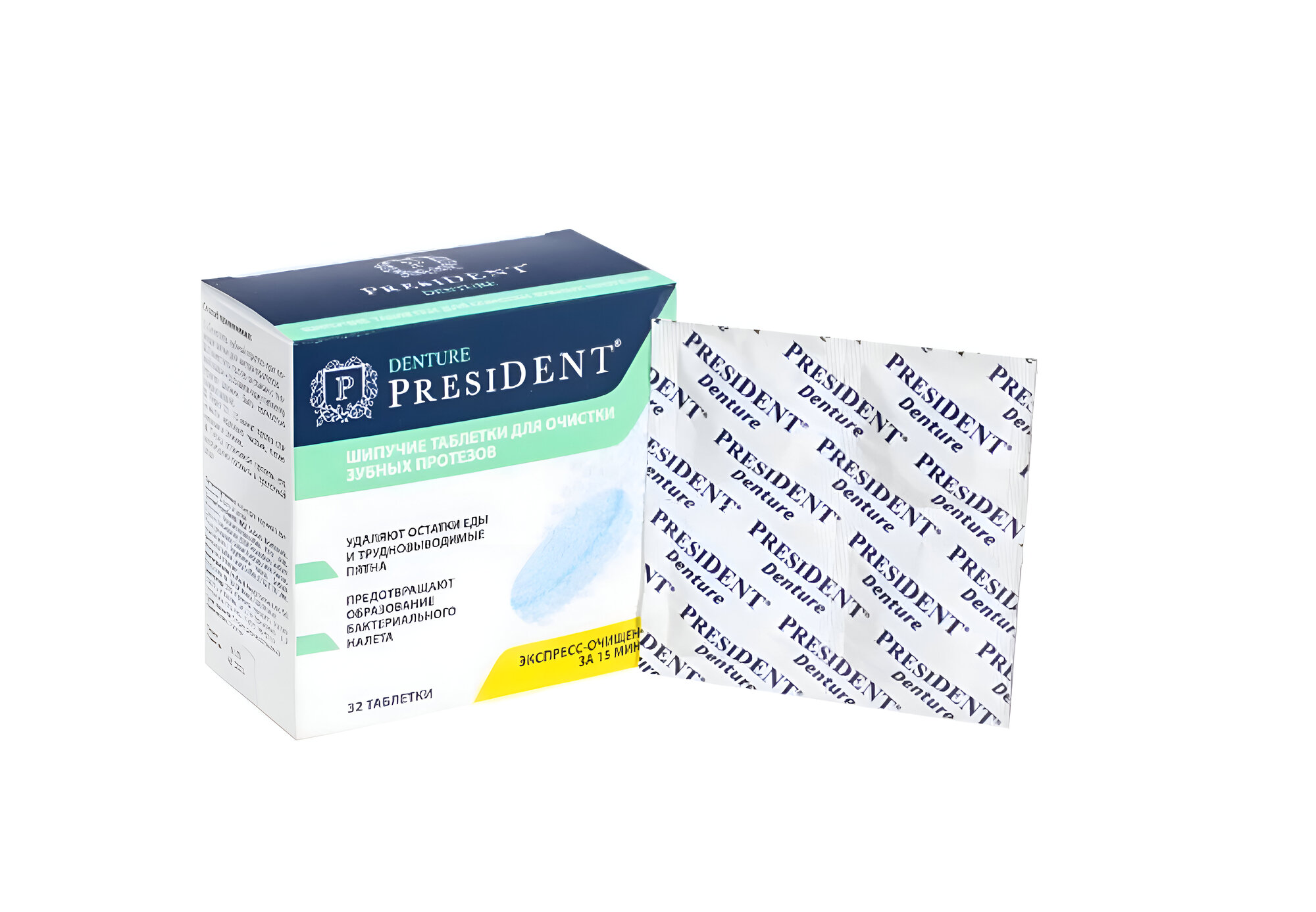 Таблетки шипучие для очистки зубных протезов Denture President/Президент 32шт Truffini & Regge (578421)