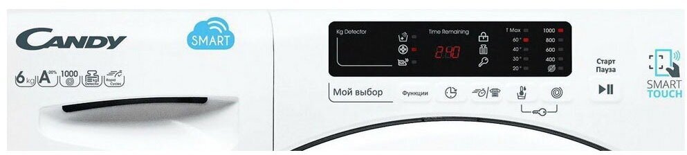 Стиральная машина Candy вместительна и оснащена прочным и долговечным барабаном из нержавеющей стали. Электронная панель управления дополнена ЖК-дисплеем, на котором отображается ход работы и остаточное время до конца стирки. Присутствует встроенный таймер отложенного старта, который можно установить на 3, 6 и 9 часов отсрочки.