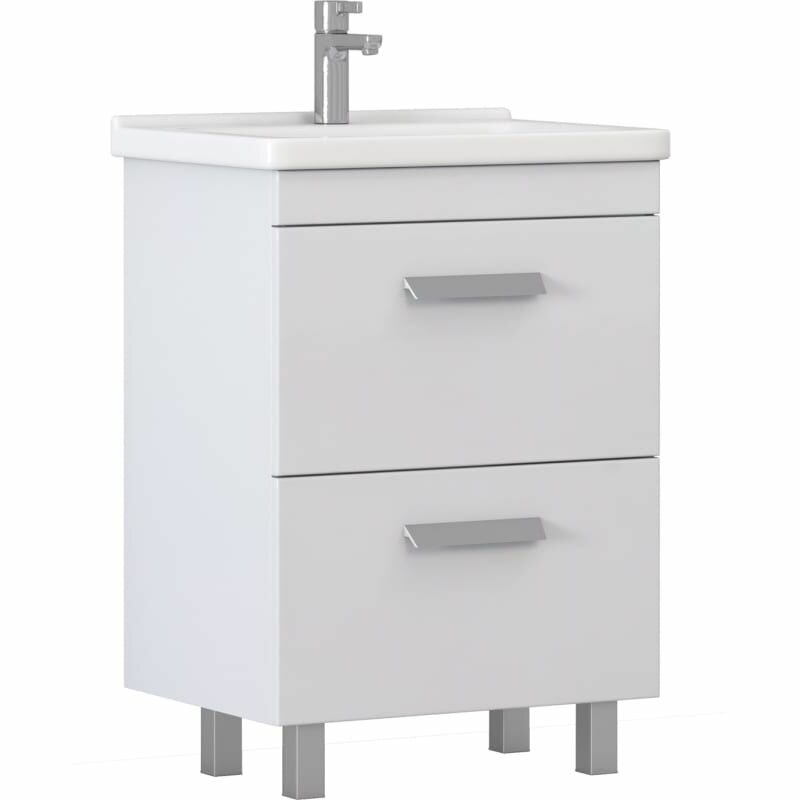 Материал корпуса: влагостойкая ЛДСП. Материал фасадов: ЛМДФ. Покрытие: пленка ПВХ белая. Ящики: направляющие полного выдвижения. 2 выдвижных ящика, ручка пластиковая, квадратные регулируемые.