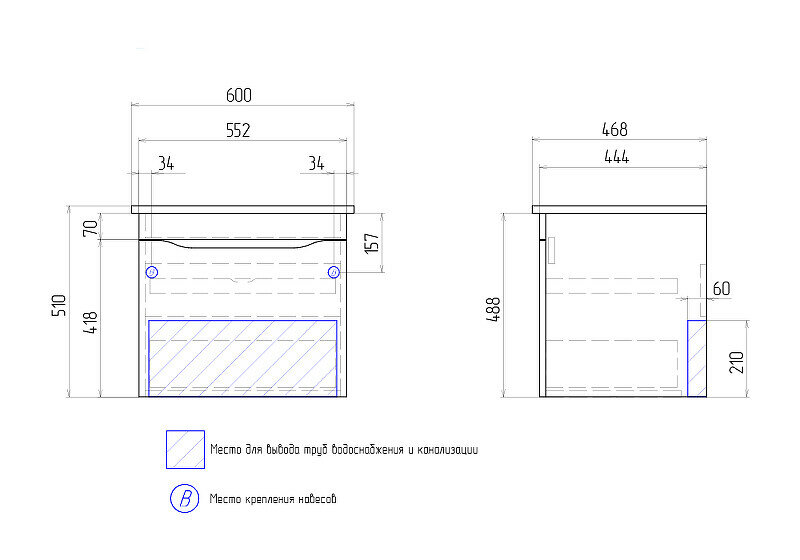 Тумба под раковину Vigo Grani 60 tp.GRI.ELI.60.1Y подвесная.