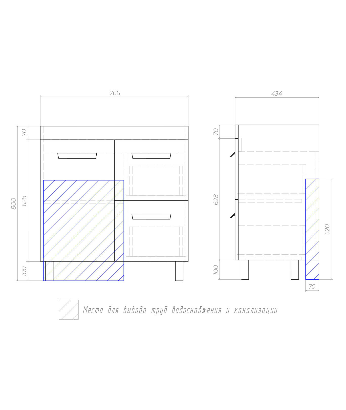 Тумба под раковину Vigo 80 Nova-2-800 Белая