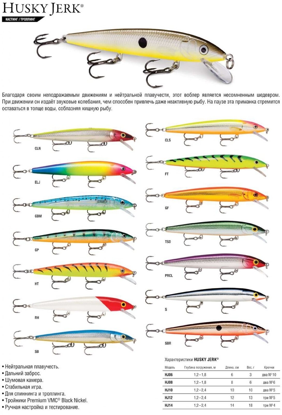 Husky Jerk от торговой марки Rapala – это легендарная модель воблера известная на весь мир. Из названия данного воблера можно сделать вывод, что он был разработан специально для рывковой проводки. Стоит отметить, что приманка оснащена специальной голографической пластиной, расположенной внутри корпуса, а так же новой системой балансировки и большой прозрачной лопастью. Серия воблеров Rapala Husky Jerk обладает нейтральной плавучестью, за счет чего на паузах он способен достаточно легко удерживаться на воде, не опускаясь на дно и не всплывая на поверхность, а кроме того его можно без особых усилий остановить на месте. Наличие шумовой камеры придает приманке еще большую привлекательность, ведь на рывках при проводке она издает некий акустический эффект, который привлекает хищника. Воблер оснащен тремя тройниками VMC, которые располагаются по нижнему краю корпуса и отличаются темным оттенком метала и превосходной заточкой, которая гарантирует отличную зацепляемость рыбы. Rapala Husky Jerk относится к классу минноу, за счет чего его игра является достаточно выверенной, позволяя эффективно управлять им даже не самому опытному рыболову. Обтекаемая аэродинамическая форма приманки способствует предельно дальнему и точному забросу. Этот факт дает возможность продуктивно использовать ее на больших акваториях, а так же сводит к минимуму влияние различных факторов окружающей среды на дальность заброса. Воблеры Rapala Husky Jerk отличаются довольно интересной игрой на твичинговой проводке. Но так же он может быть использован в сочетании с равномерной проводкой или stop-and-go.