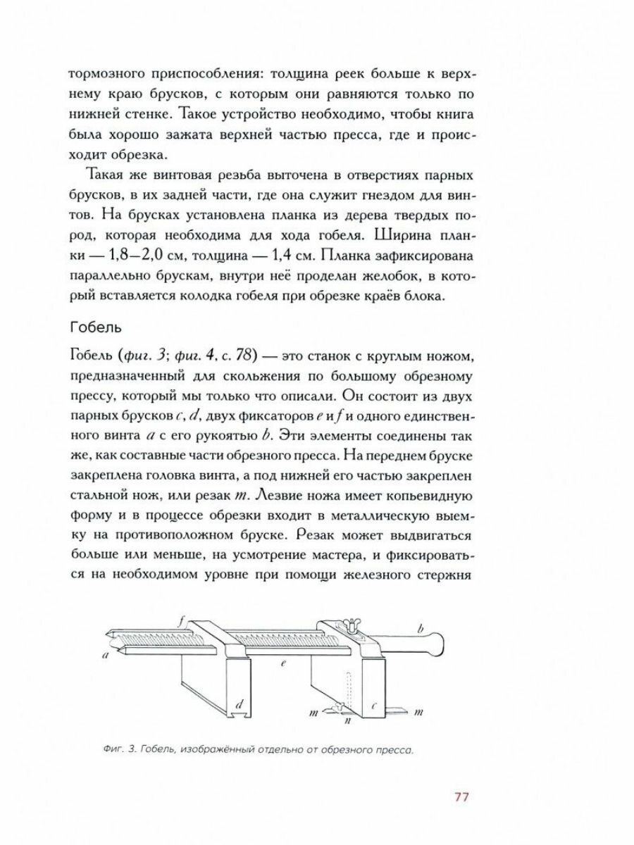 В издании детально описаны все этапы создания переплёта: от правильной раскладки свежеотпечатанных листов до золотого тиснения и реставрации. В учебнике даны не только общие принципы, но и маленькие хитрости отдельных процессов, секреты профессии. Автор сумел доступно объяснить переплётное дело так, чтобы оно было понятно как опытным, так и начинающим мастерам, и людям, только интересующимся этим ремеслом. Эта книга станет для многих проводником в мир книжного дела, и она поможет вам понять книгу изнутри. С ней вы совершенно иным взглядом посмотрите на антикварную книгу. После прочтения каждая виньетка, каптал, золочёный обрез, форзац и прочие элементы переплета обретут для вас свою важность.