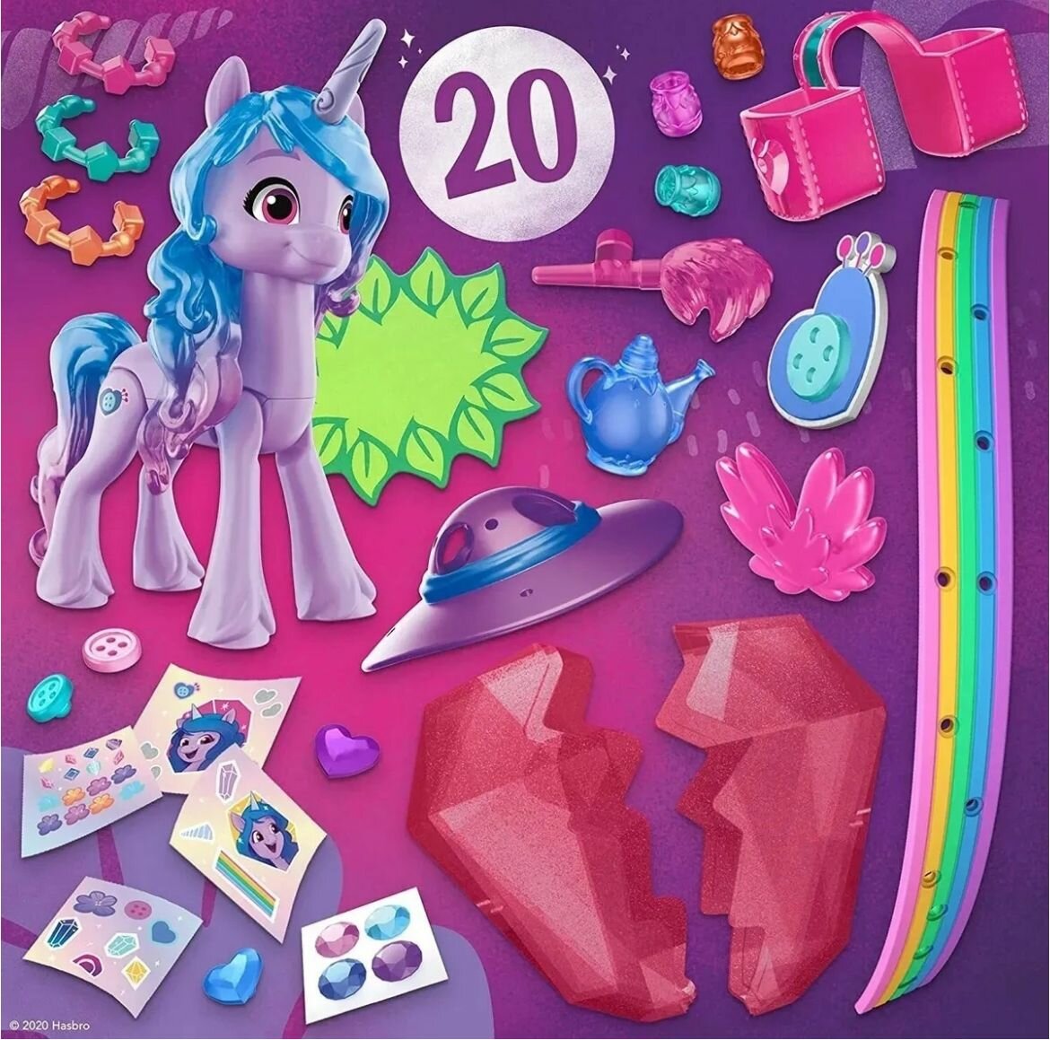 - В набор входят фигурка пони, контейнер-кристалл и множество тематических аксессуаров!