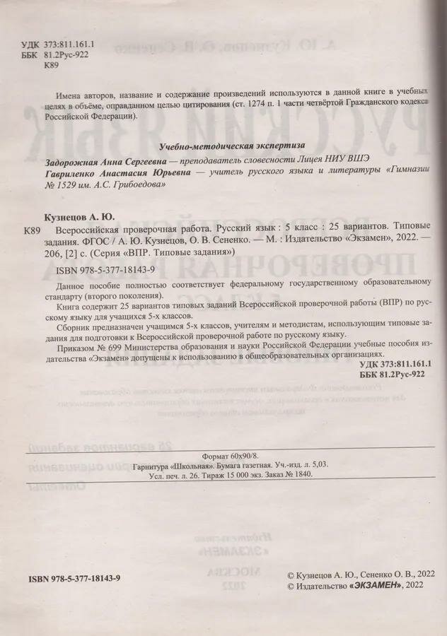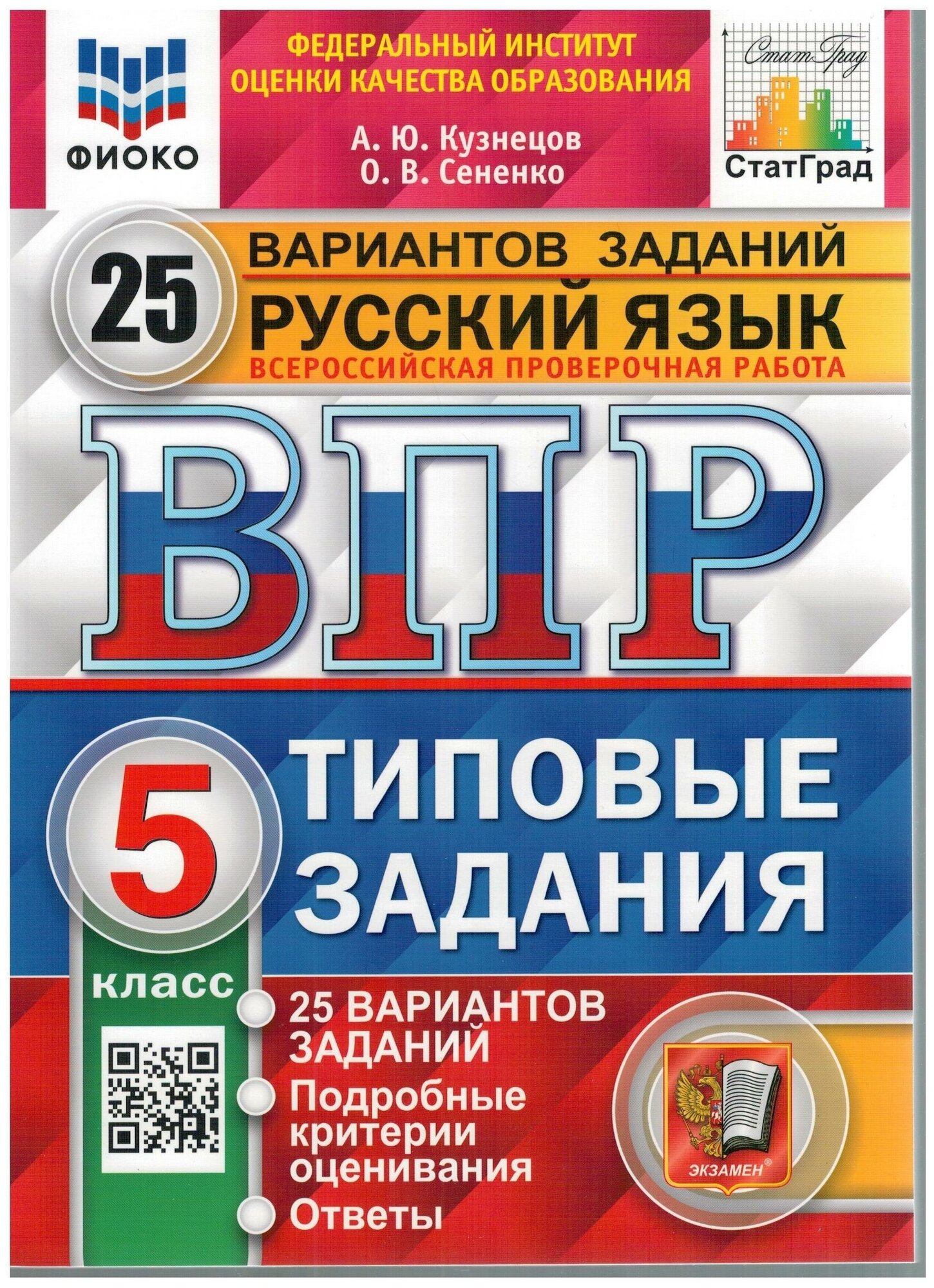 Всероссийская проверочная работа Русский язык 5 класс Типовые задания 25 вариантов заданий (Олеся Владимировна Сененко, Андрей Юрьевич Кузнецов); Экзамен, 2025
