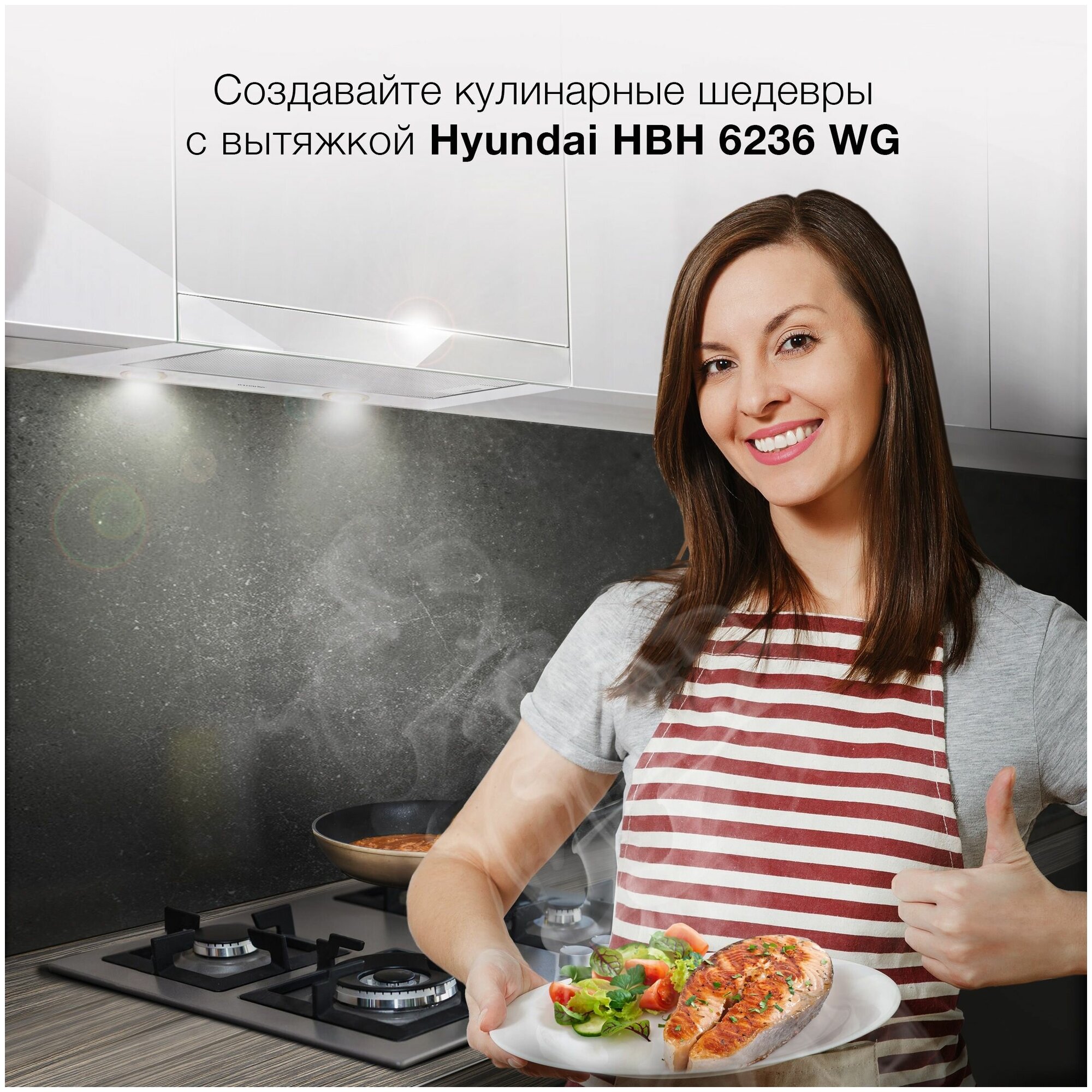 Встраиваемая вытяжка Hyundai управление кнопочное белый HBH 6236 WG