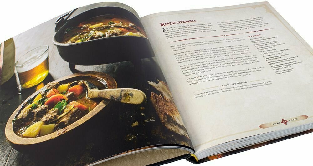 Отложите пачки чипсов и откройте «Пир героев»! Привнесите в свою следующую партию по-настоящему захватывающий опыт, добавив в неё множество лакомств, от буйабеса с Побережья Мечей и грибных стейков дроу до любимого блюда дварфов — сочной солонины с капустой. Эта великолепная книга подарит множество блюд для ваших друзей и семьи».