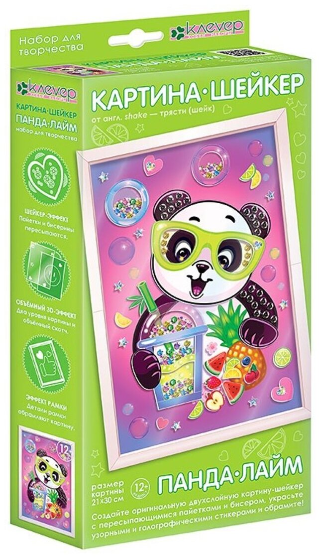 Картина-шейкер «Панда-лайм» (от англ. shake - трясти) разработана для подростков старше 12 лет и поможет им создать необычные картины с эффектами «шейкер» и «3-D».