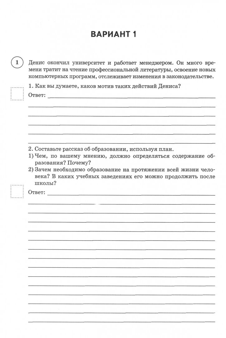 Книга содержит образец работы с комментариями и рекомендациями по выполнению заданий, а также развёрнутые ответы ко всем заданиям и критерии их оценивания. В приложении приведён словарь обществоведческих терминов.
