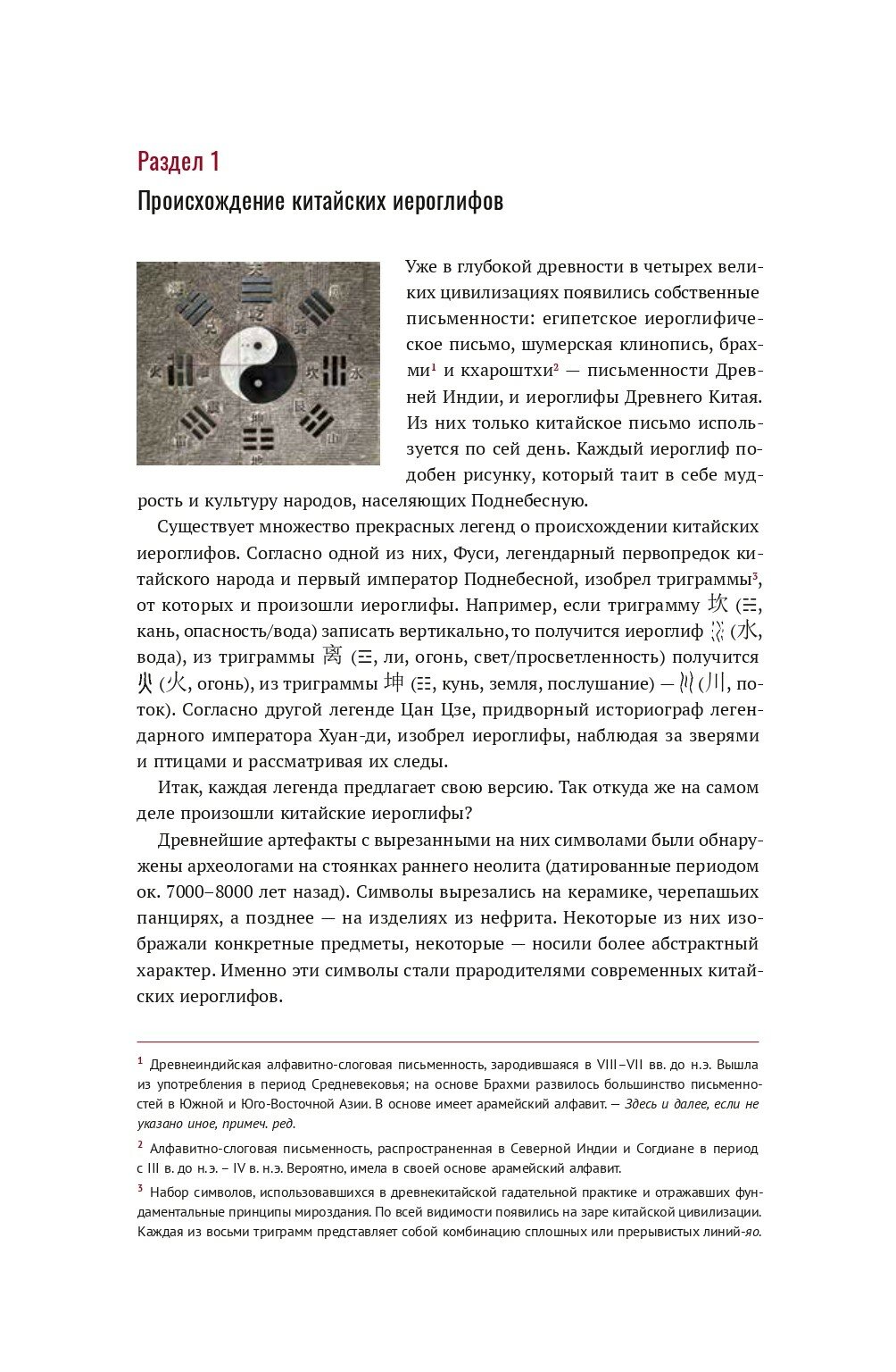 Книга познакомит читателя с этимологией китайских иероглифов от эпохи раннего неолита до наших дней. Многочисленные иллюстрации помогут понять, как изменялись китайский язык, восприятие слов и идеограмма китайской письменности. В тематических разделах книги представлены наиболее базовые иероглифы (человек, дом, река, огонь, мать, друг), что позволяет погрузиться в этимологию слов даже тем, кто впервые знакомится с китайской культурой.