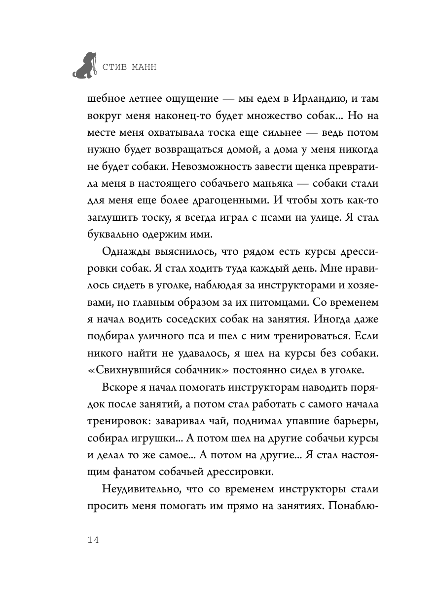 Хотите гулять со своей собакой на улице без поводка и научить ее прибегать к вам с первого подзыва? Отучить щенка подбирать с земли и привить ему хорошие манеры? Книга известного в мире дрессировщика собак и бихевиориста с 30-летним стажем Стива Манна поможет в воспитании собак любого возраста. Независимо от того, завели ли вы нового щенка, или живете со взрослой собакой, или хотите обучить собаку-спасателя, авторские методы дадут вам все, что необходимо знать, для того, чтобы жизнь с питомцем стала комфортной и счастливой.