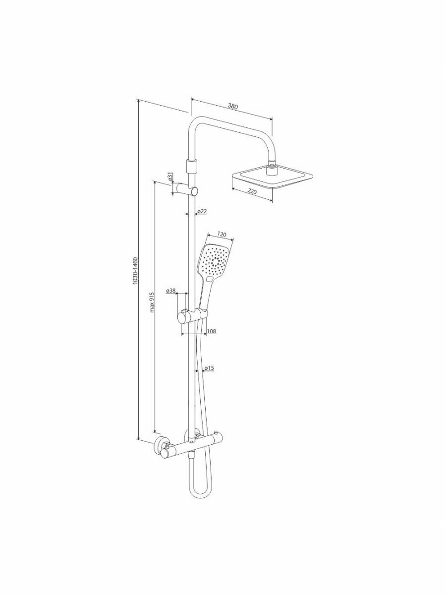 - Длина душевой штанги: 101-146 см.