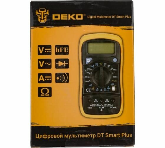 | Описание | Deko DT Smart Plus представляет собой ручной цифровой мультиметр для измерения постоянного и переменного напряжения, постоянного и переменного тока, сопротивления, диода, транзистора, частоты, температуры, емкости и непрерывности. |