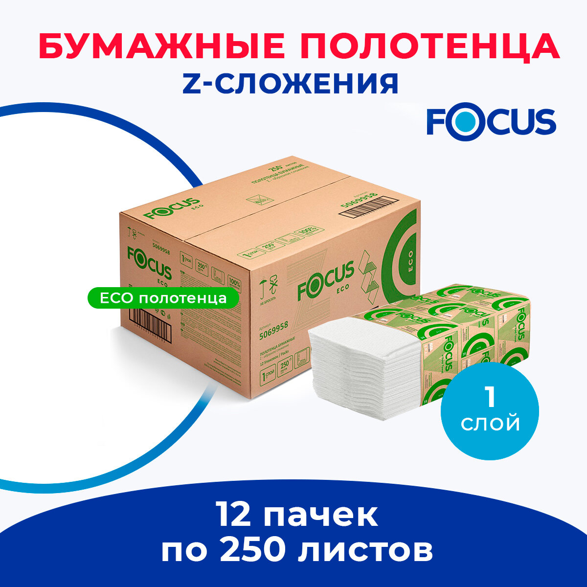 Полотенца бумажные Focus Eco 1-нослойная 250лист. белый (упак.:12шт) (5069958)