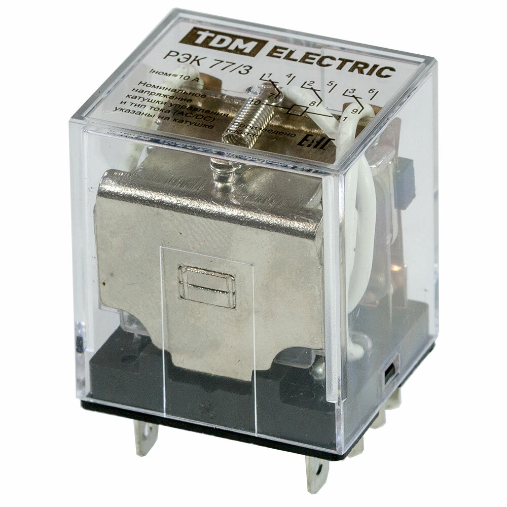 Реле TDM РЭК77/3 10А 12В DC, предназначено для передачи команд управления исполнительным элементам путем коммутации их электрических цепей переключающими контактами.