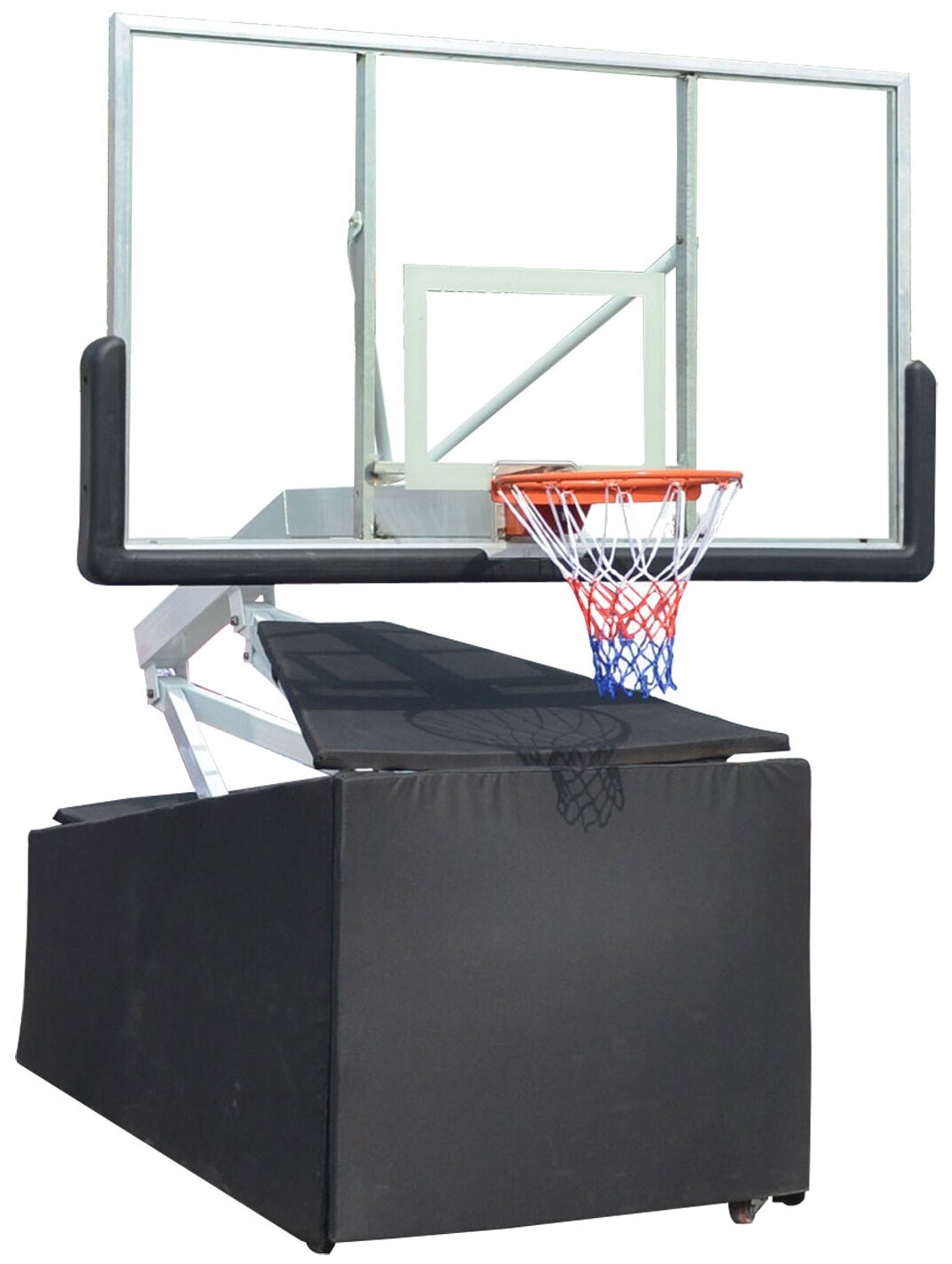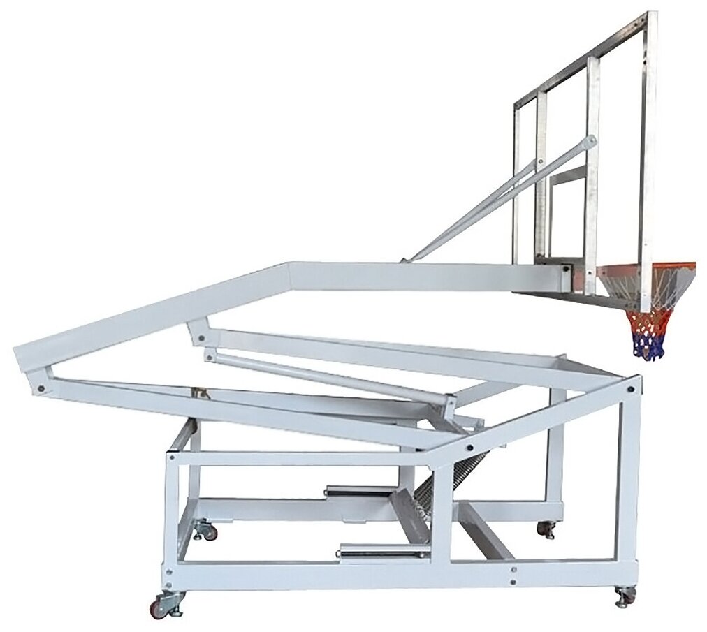 Баскетбольная мобильная стойка клубного уровня для установки в помещении. тойка оснащена пружинным механизмом для складывания и раскладывания. При раскладывании стойка автоматически устанавливается на рабочую высоту в 305 см. Кольцо не регулируется по высоте.